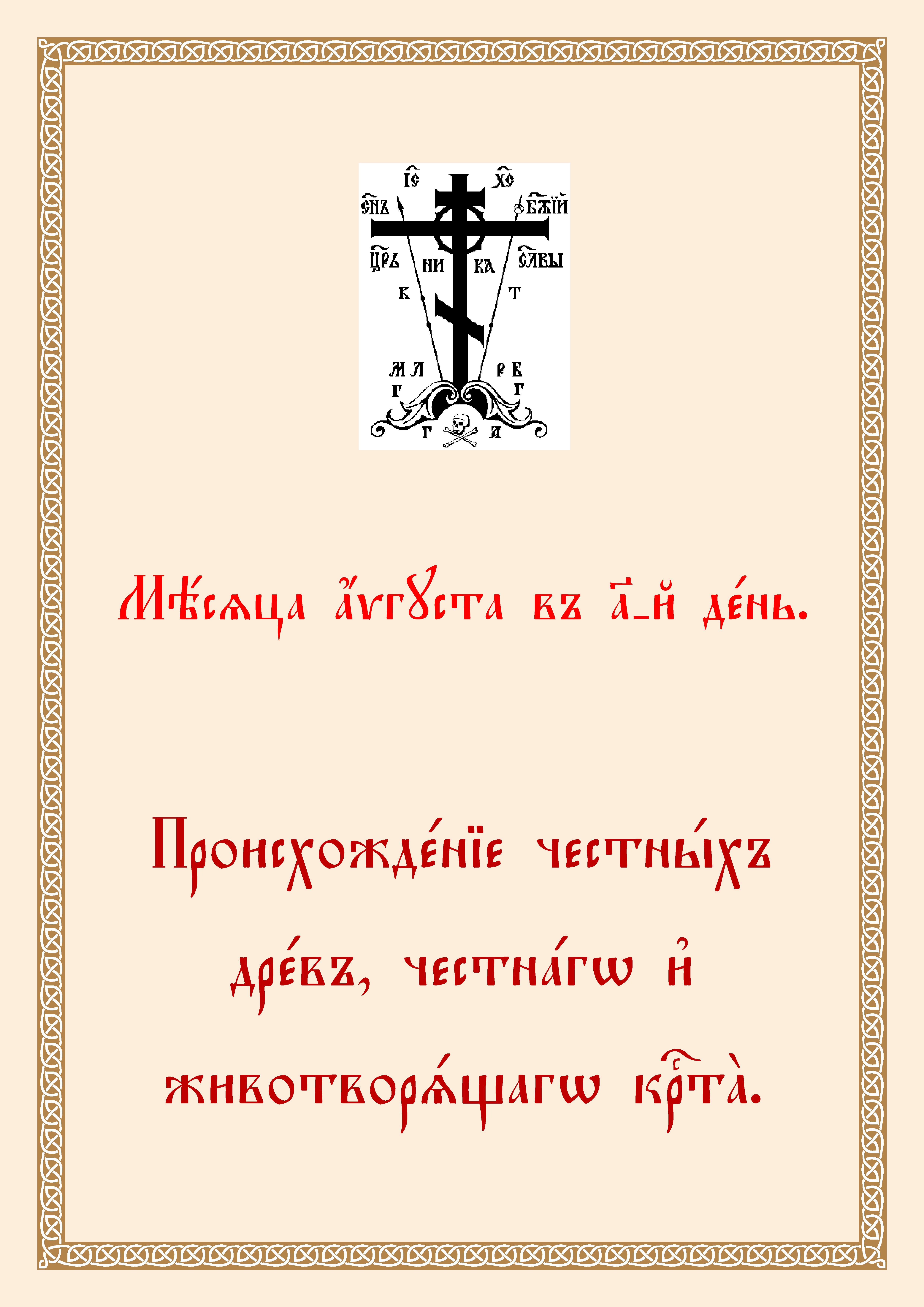 1 (14) августа. Происхождение (изнесение) честных древ Честного и Животворящего Креста