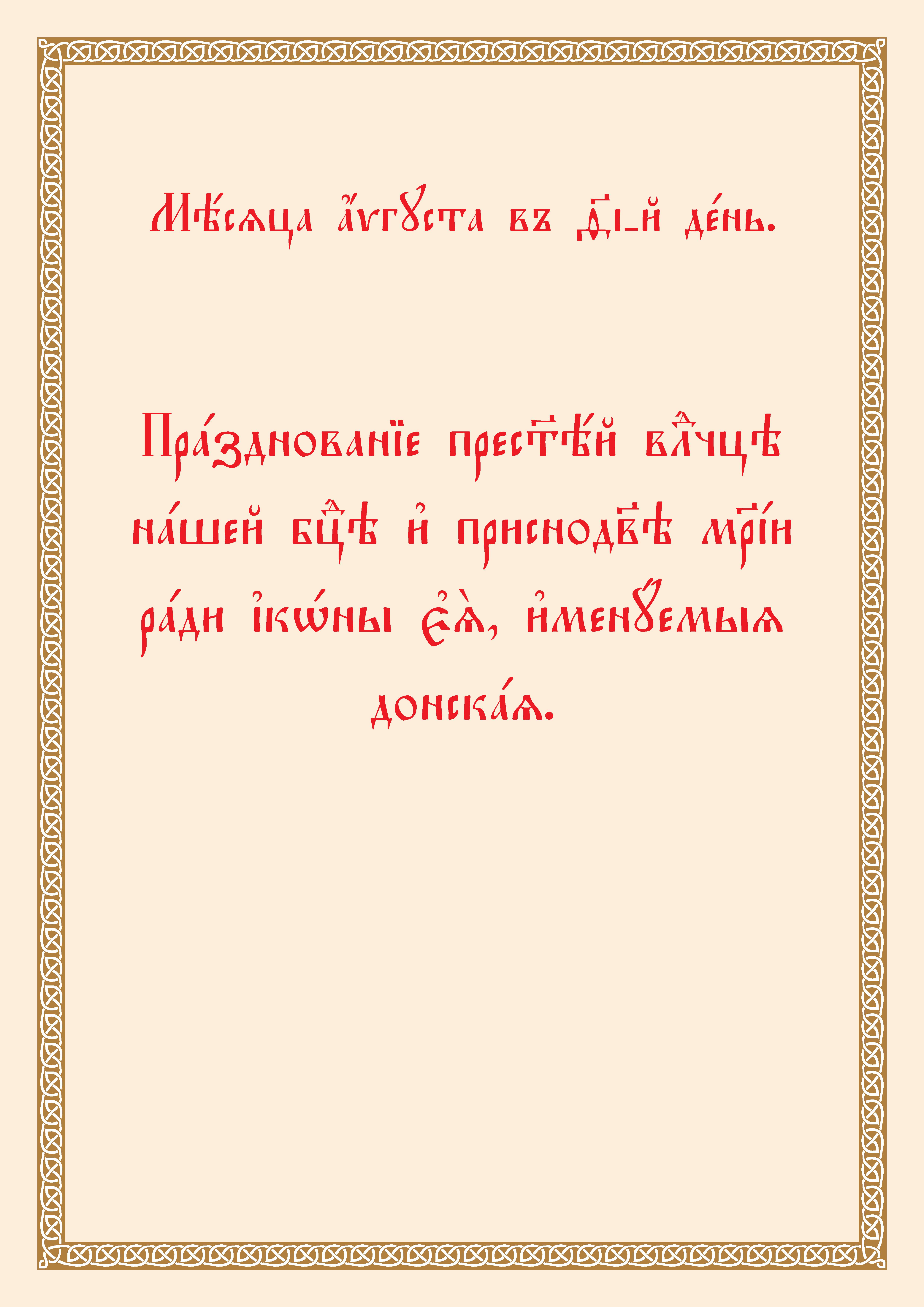 19 августа (1 сентября н. ст.). Тропарь Донской иконе Божией Матери