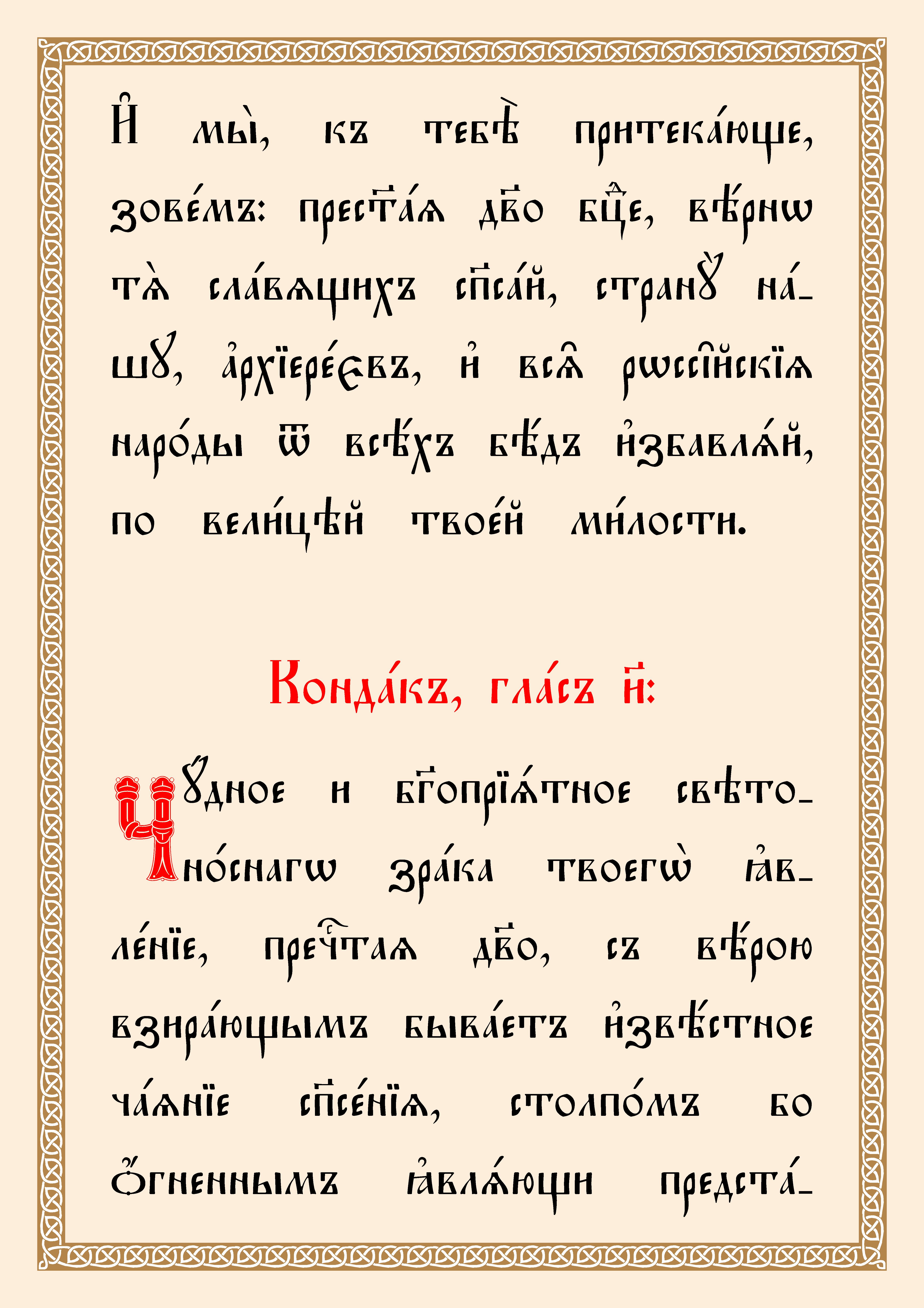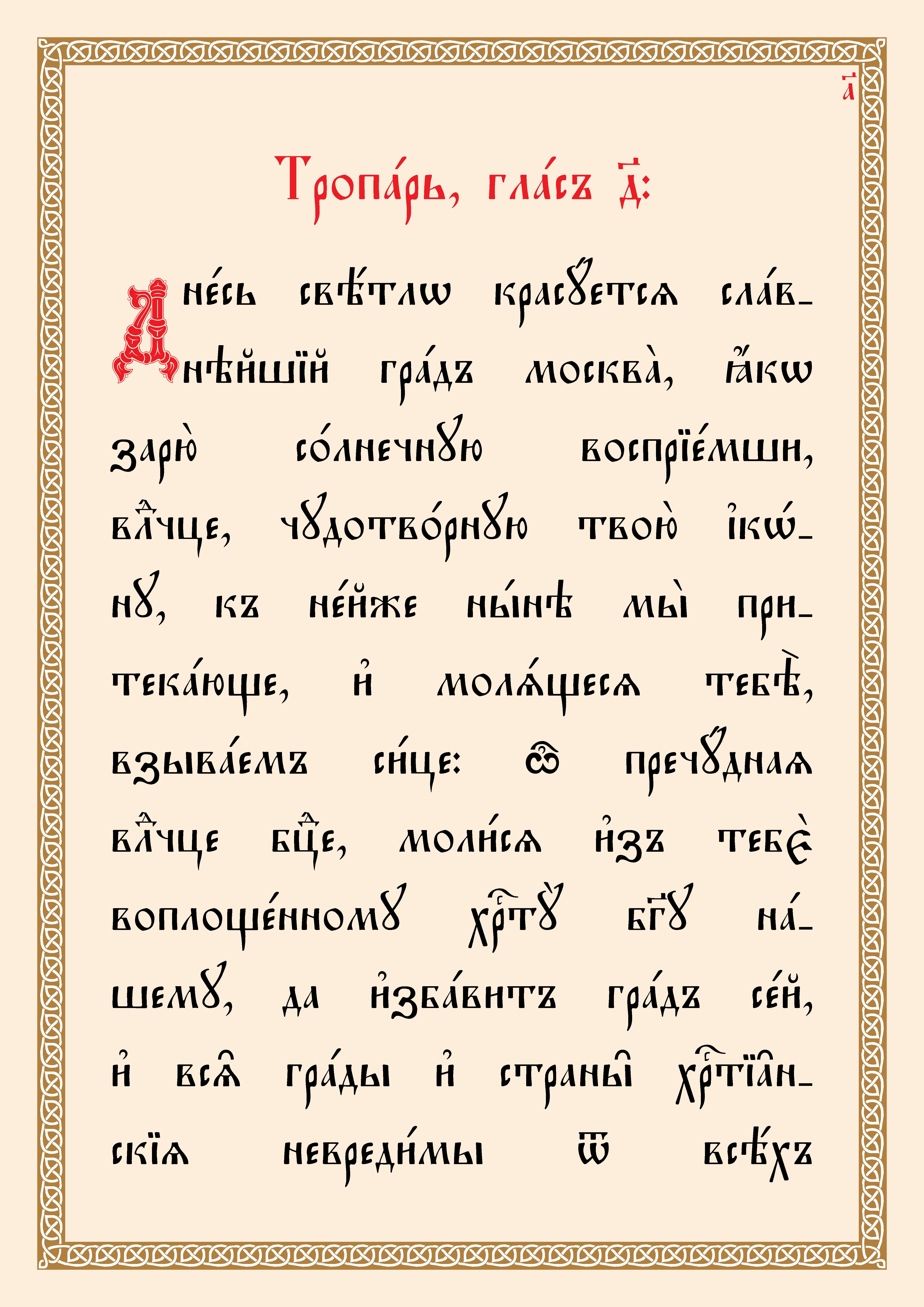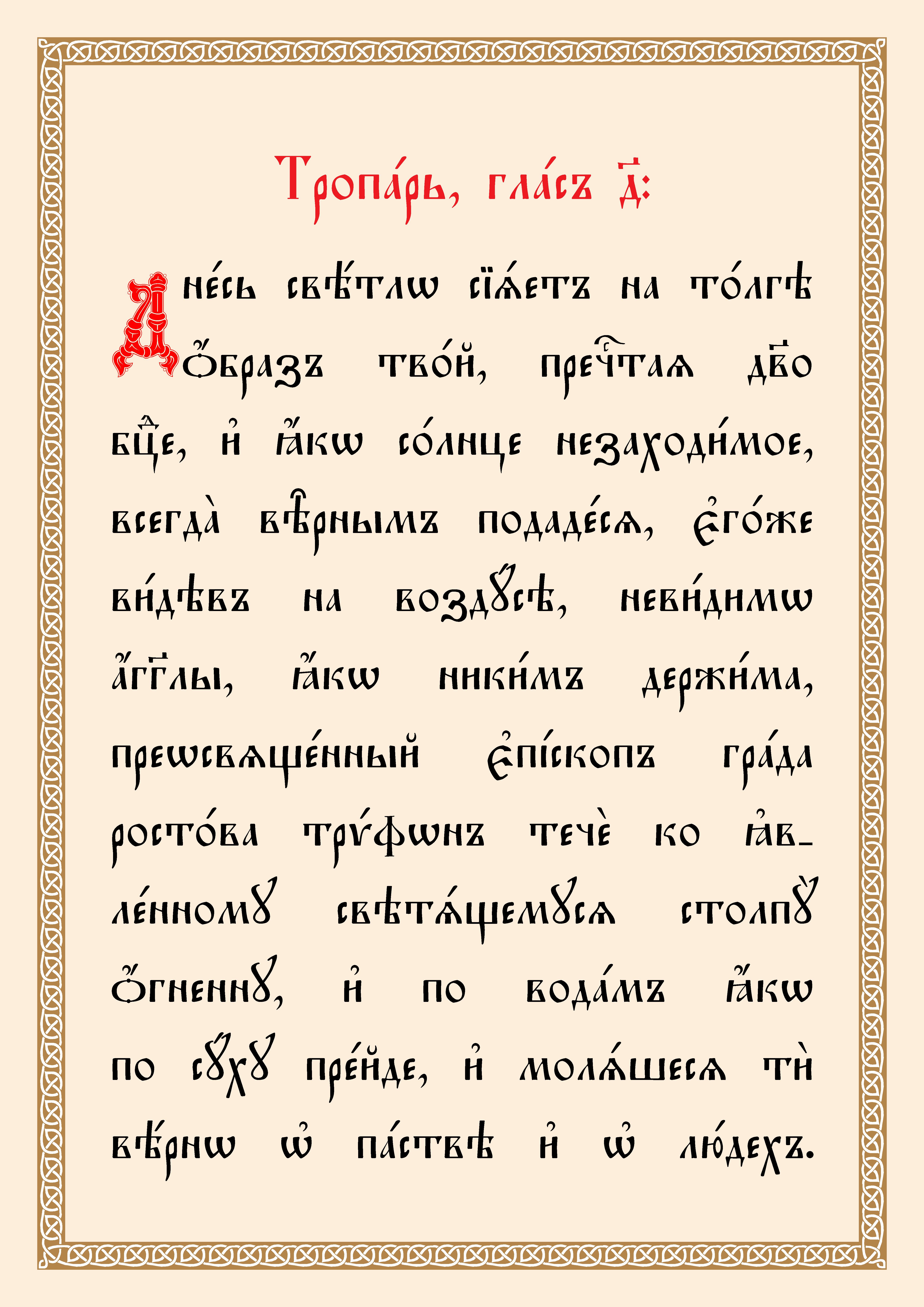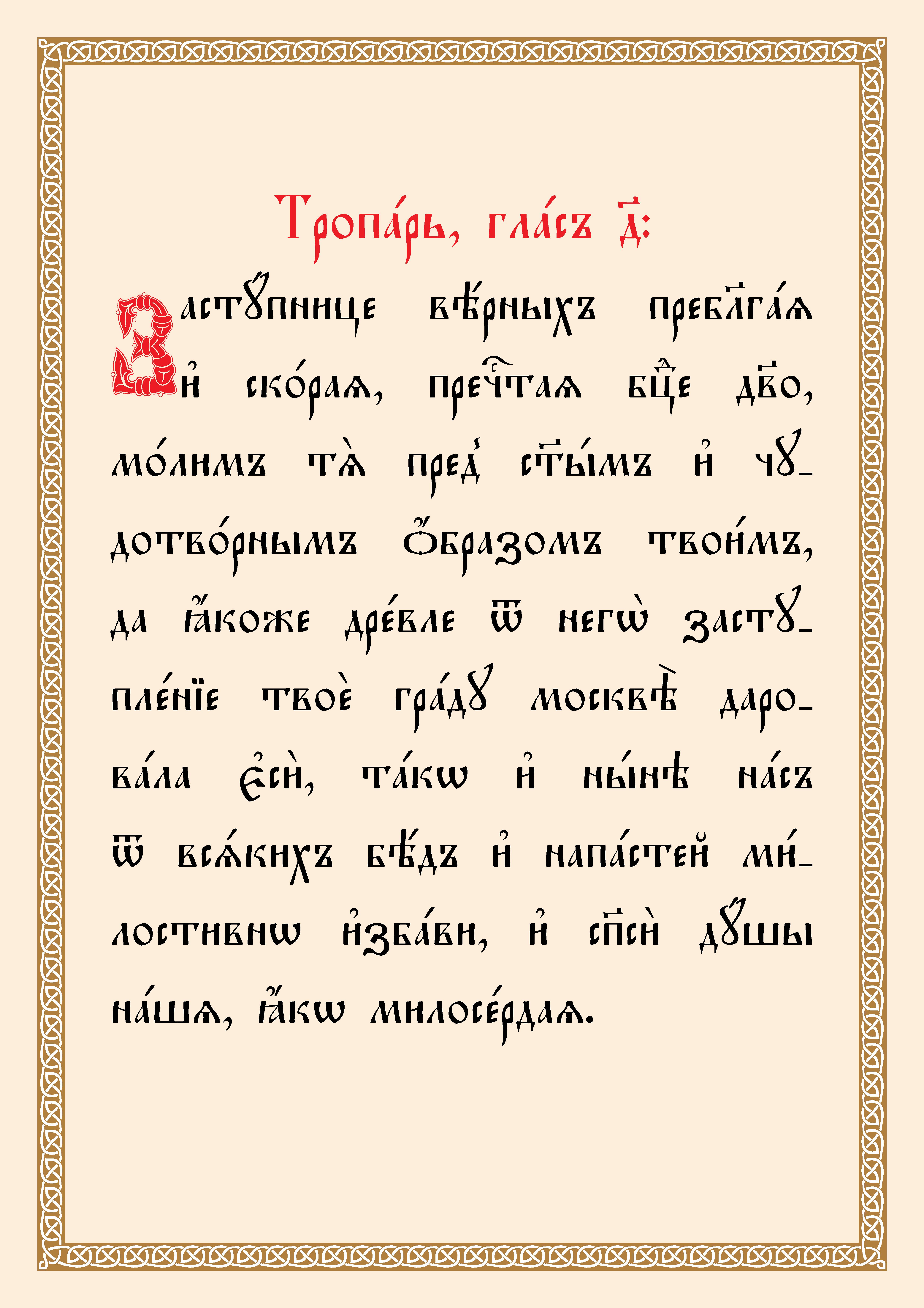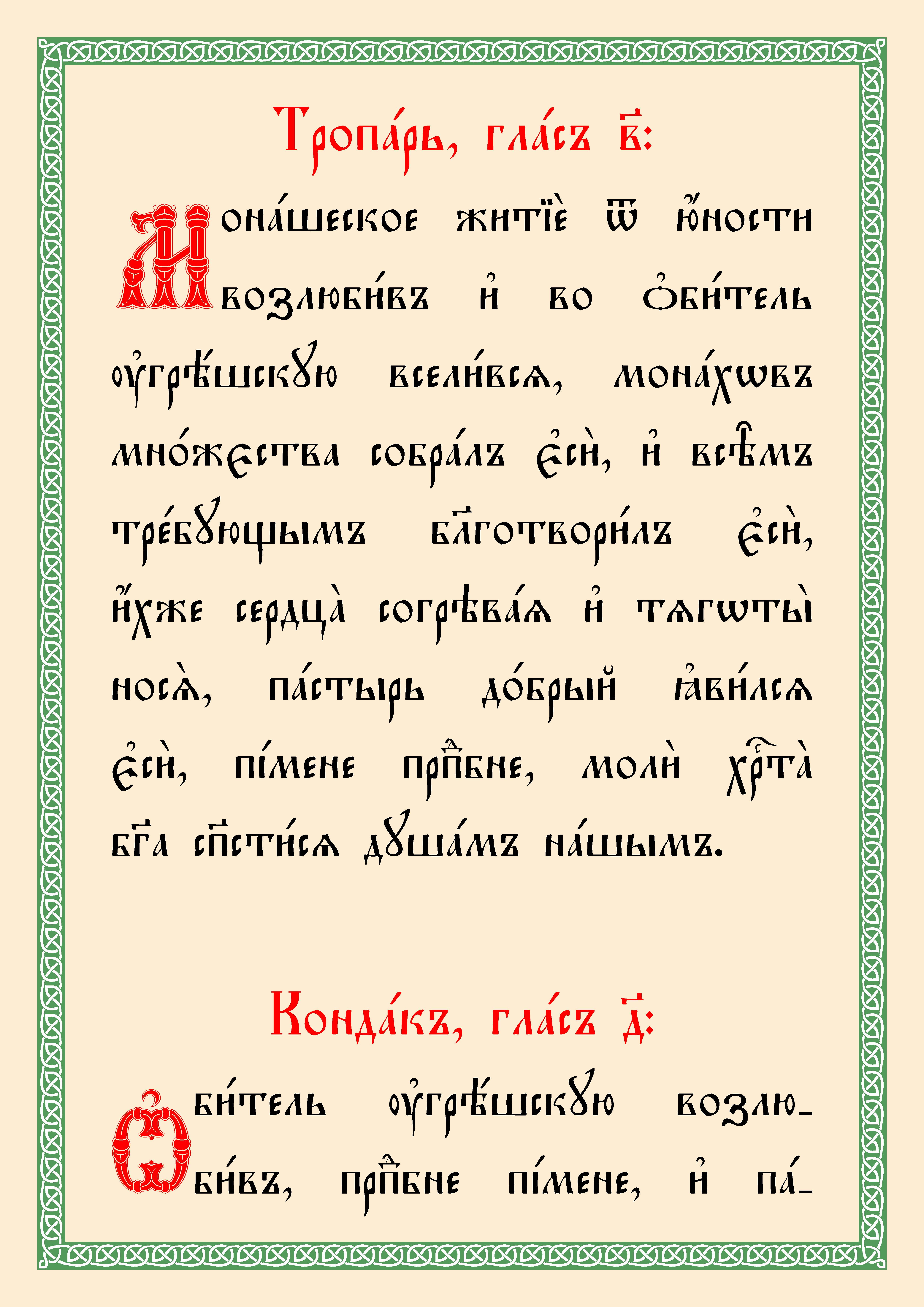 (Текст тропаря и кондака Толгской иконе переведен из русской транскрипции на церковнославянскую орфографию).