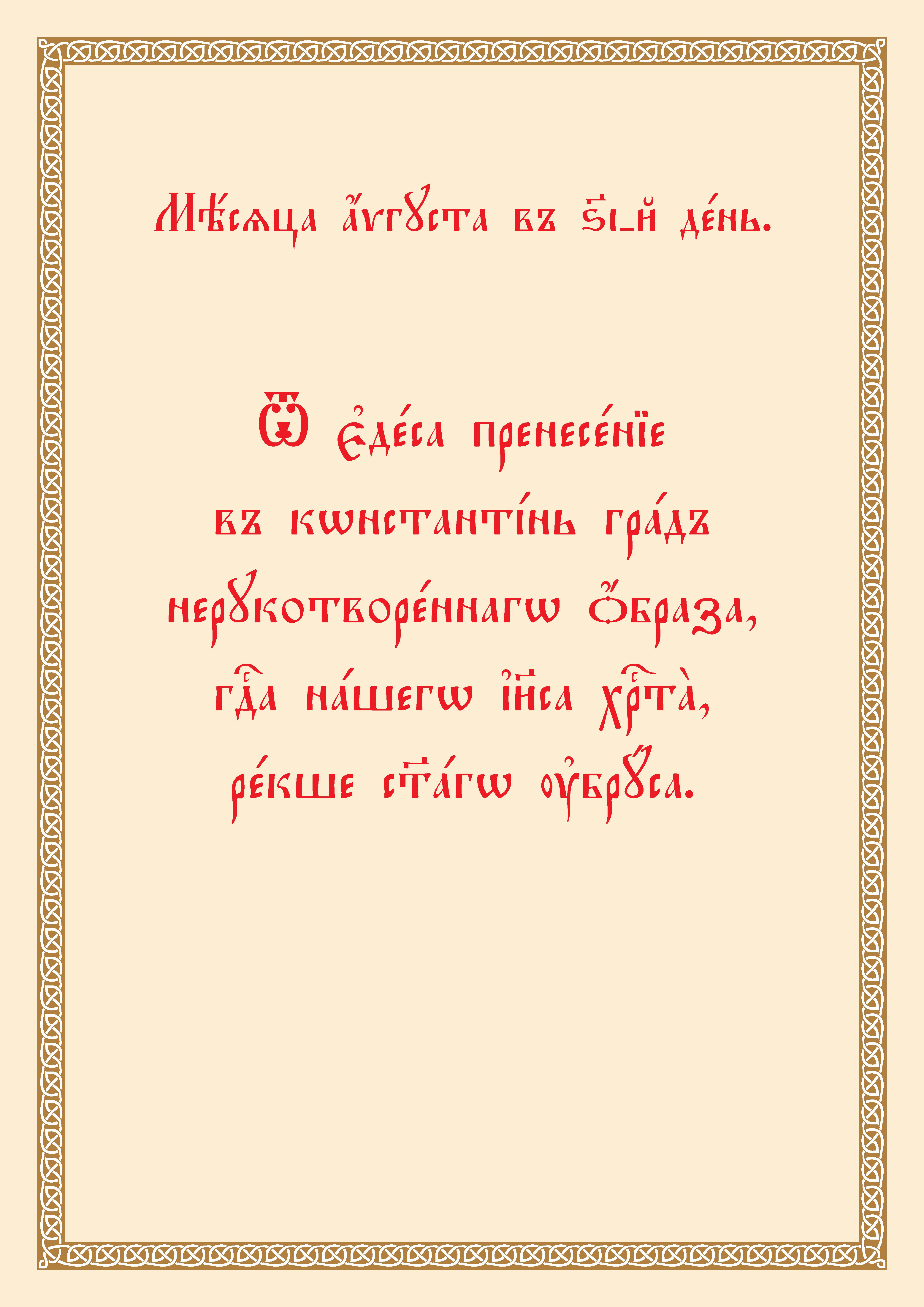 16 (29) августа. Тропарь Нерукотворному Образу