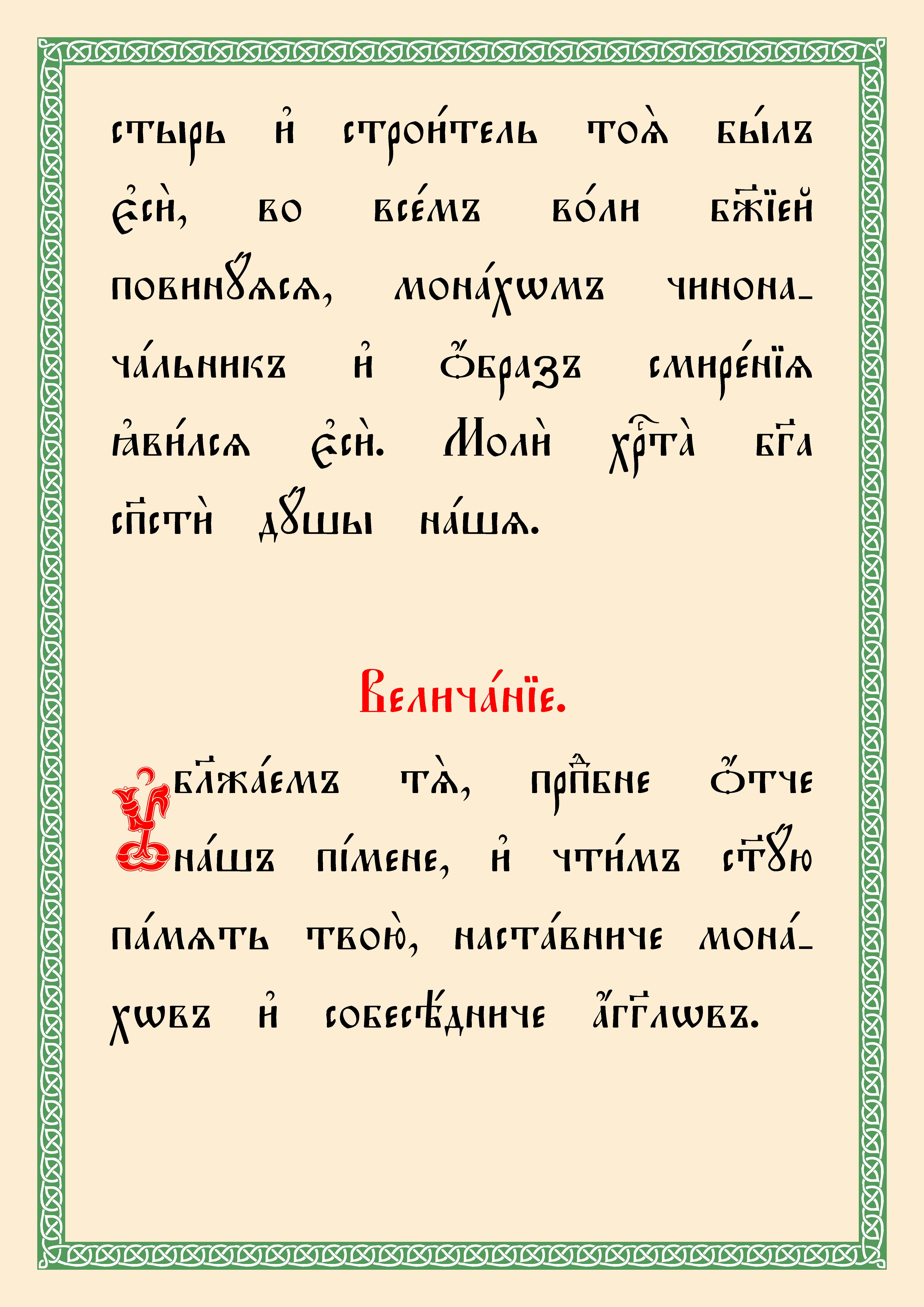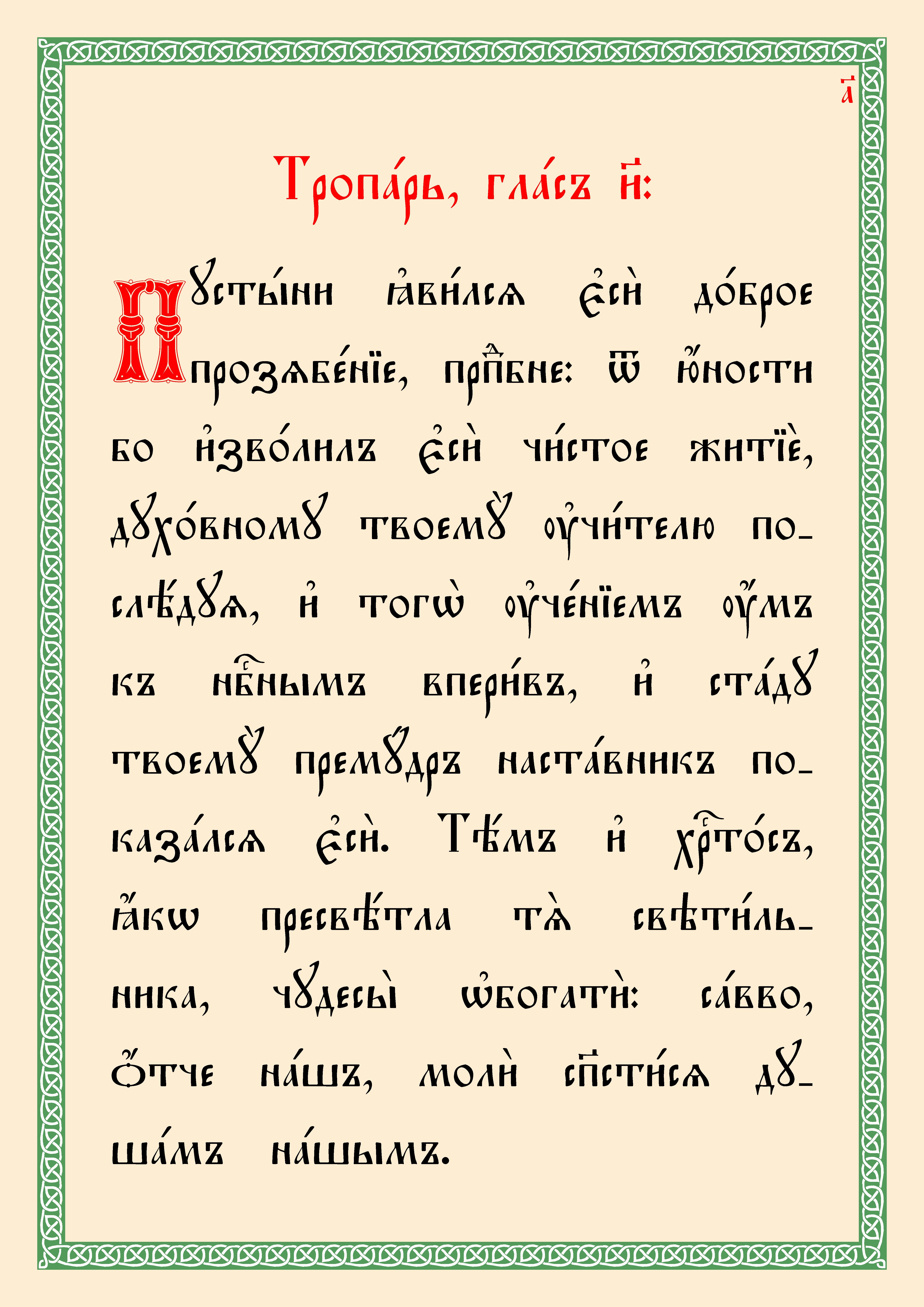 (Текст тропаря и кондака прп. Пимену переведен из русской транскрипции на церковнославянскую орфографию).