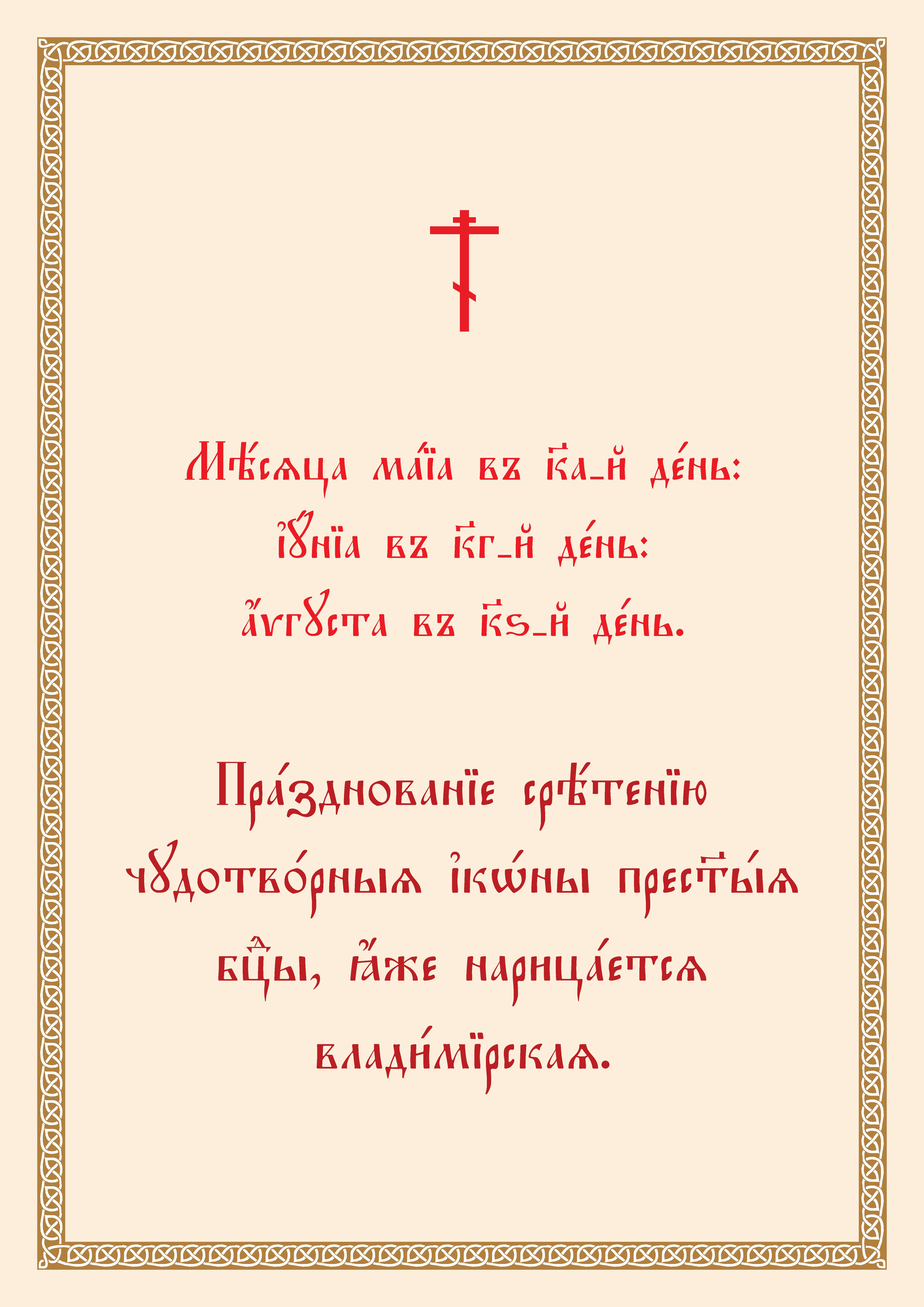 26 августа (8 сентября н. ст.). Тропарь, кондак, величание Владимирской иконе Божией Матери
