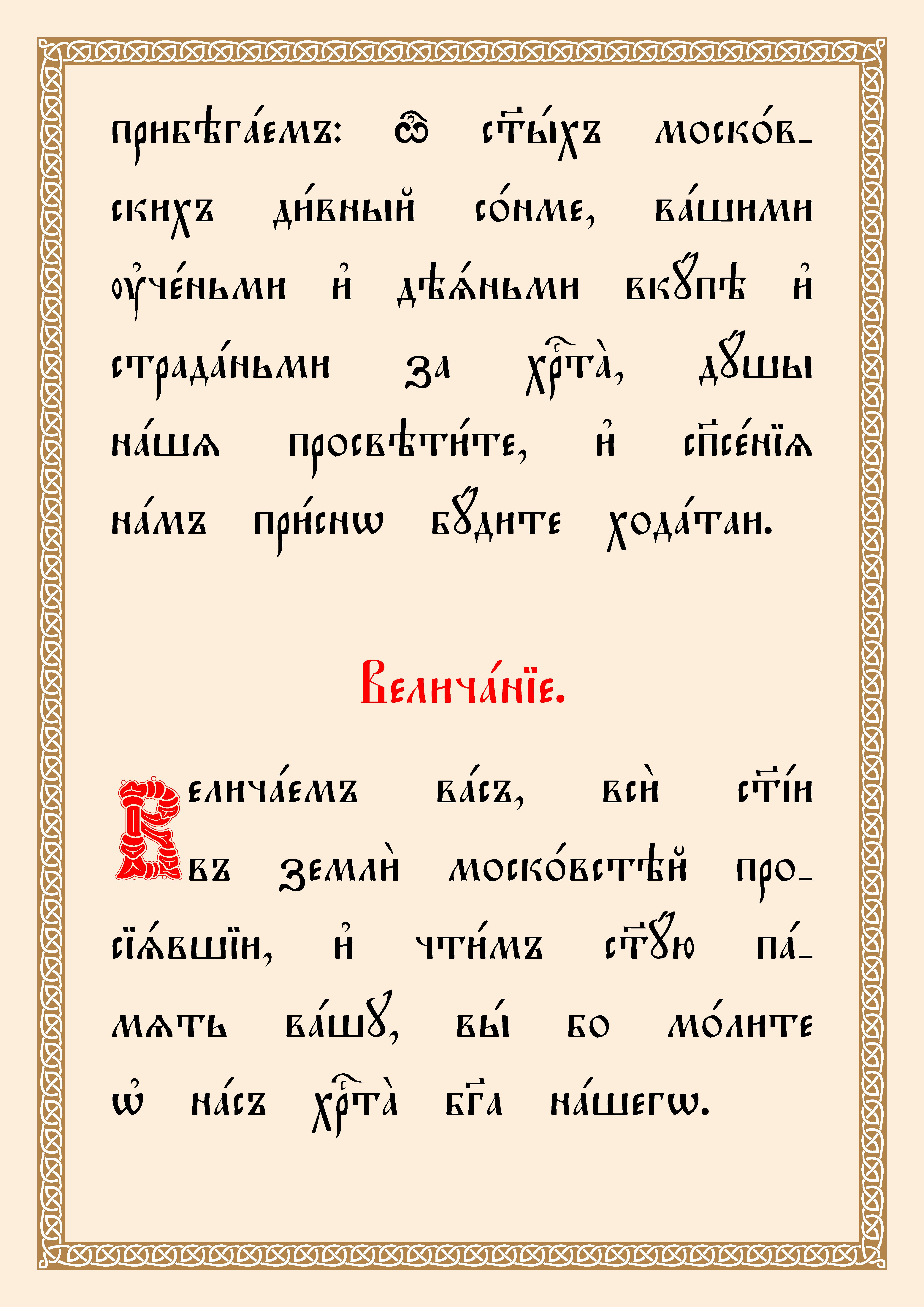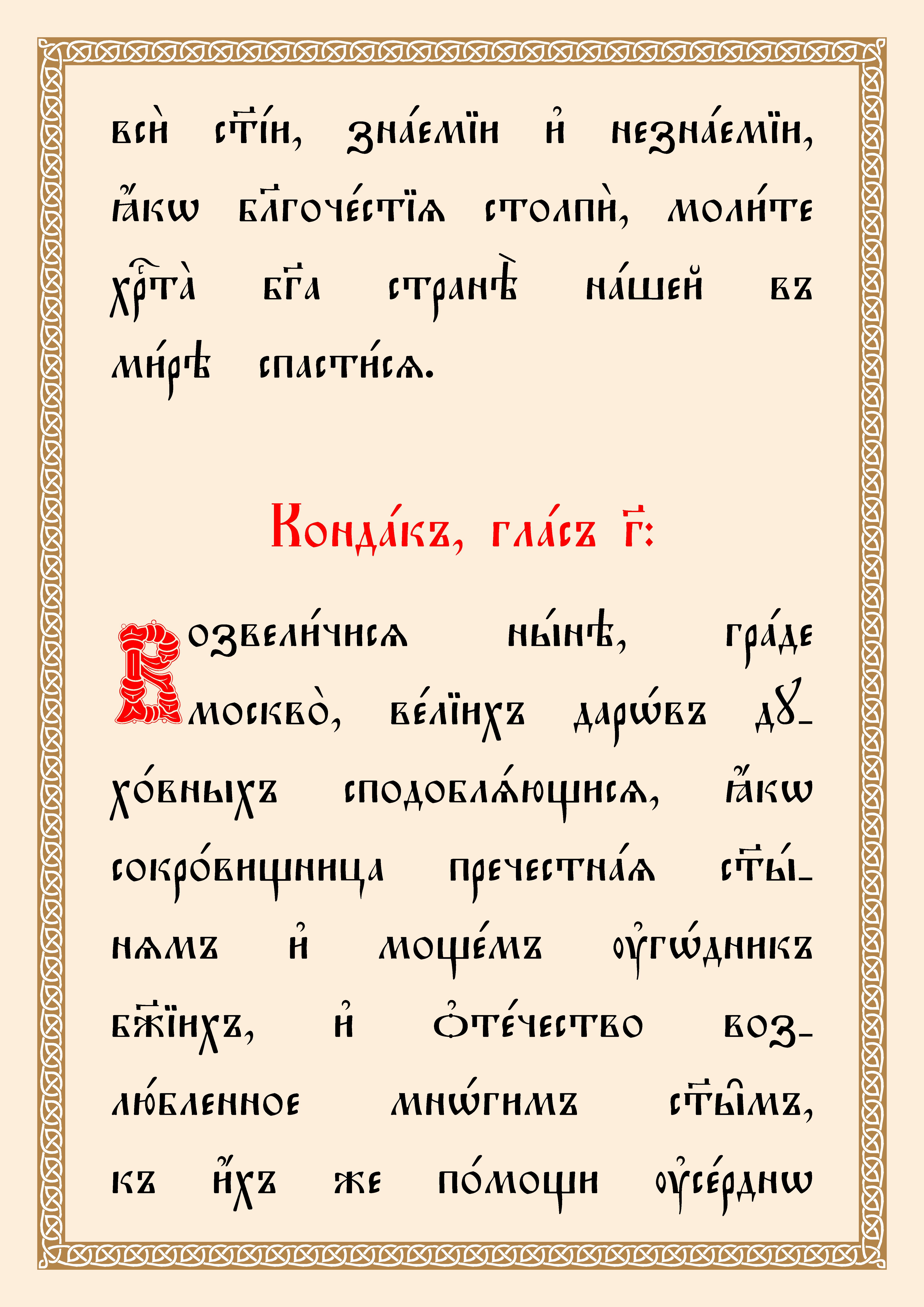 (Текст тропаря и кондака Собору Московских святых переведен из русской транскрипции на церковнославянскую орфографию).