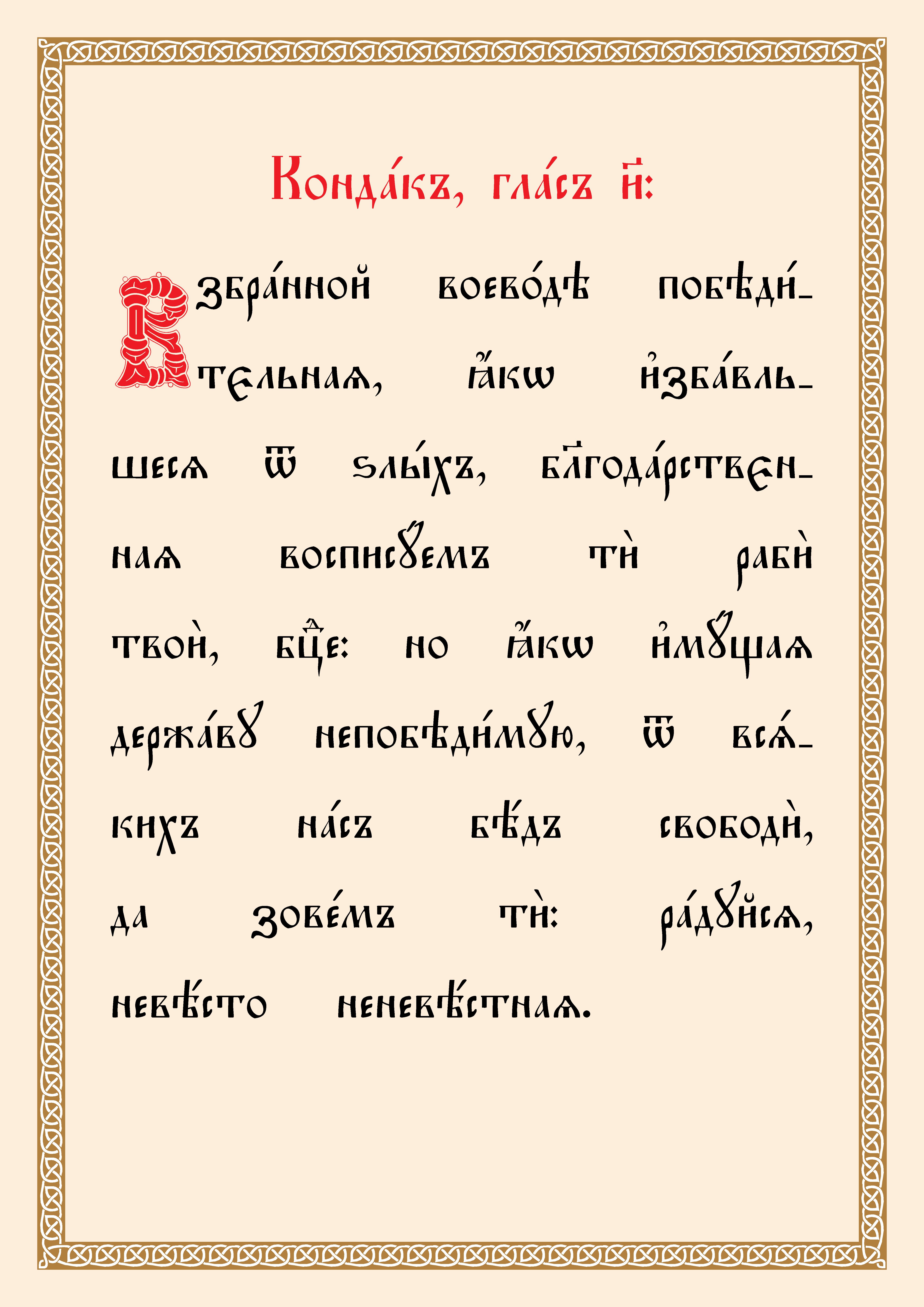 В субботу 5-й седмицы Великого поста. Кондак Похвалы Пресв. Богородицы (Взбранной Воеводе)