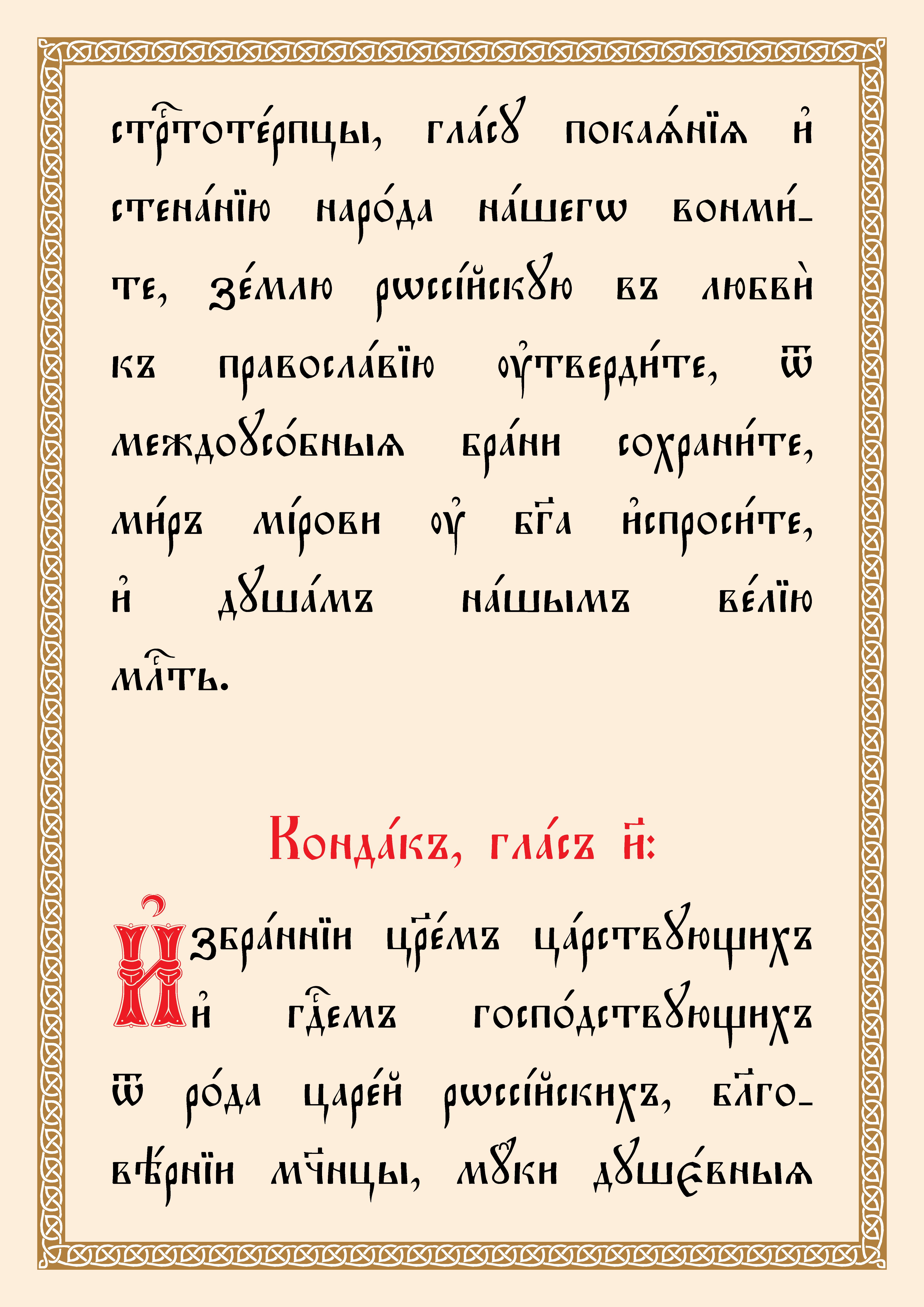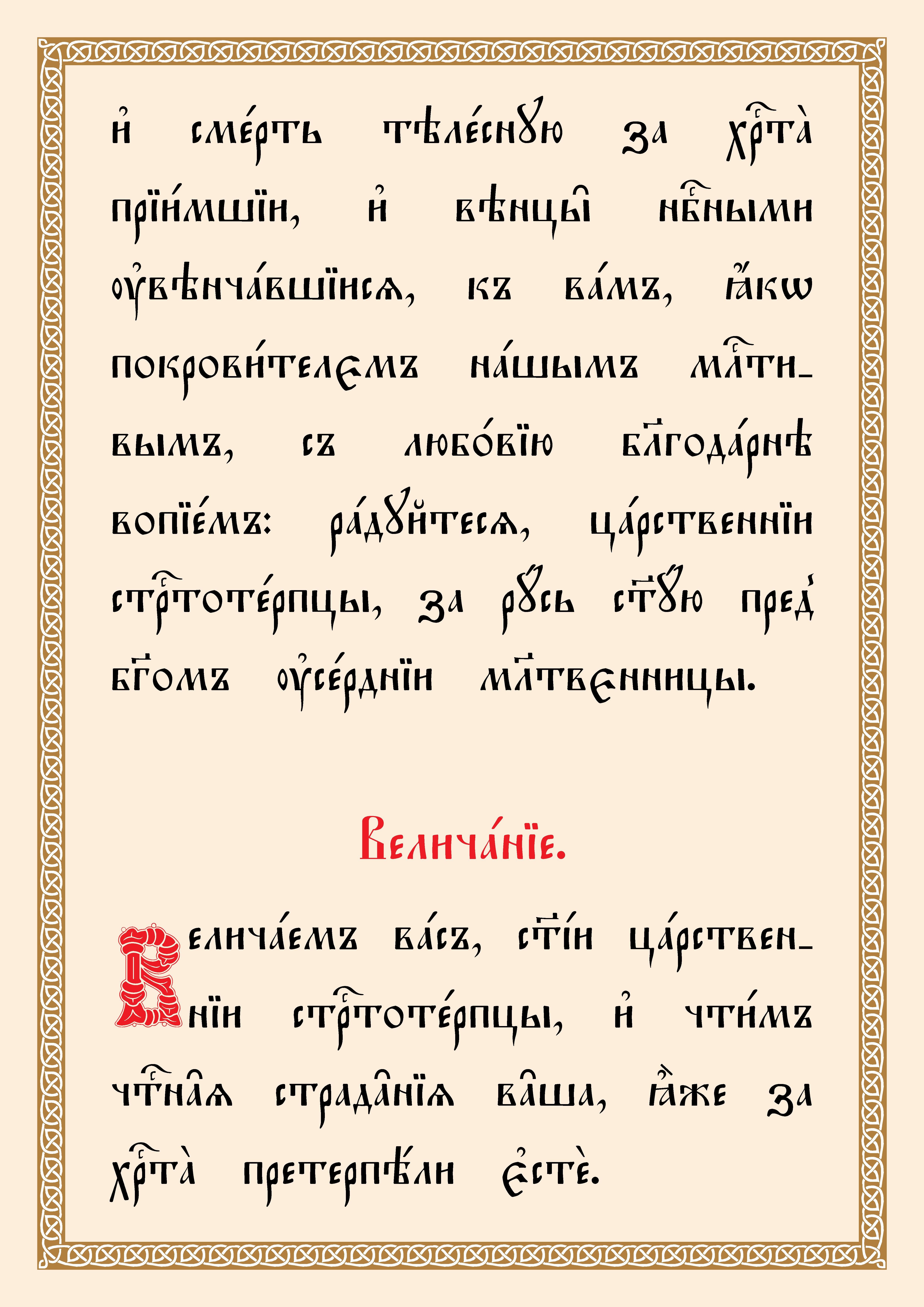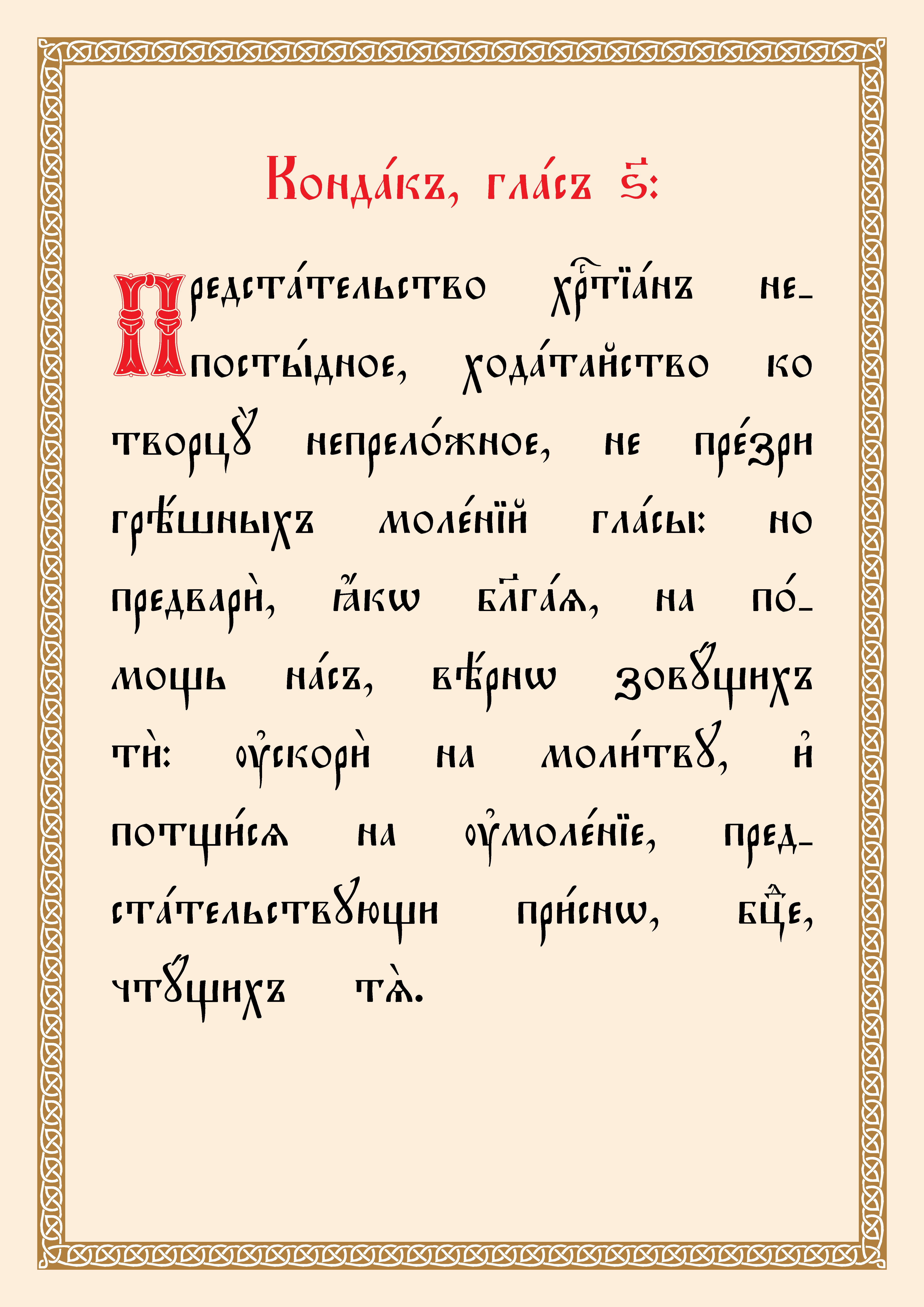 (Текст тропарей иконе Божией Матери Троеручице переведен из русской транскрипции на церковнославянскую орфографию).