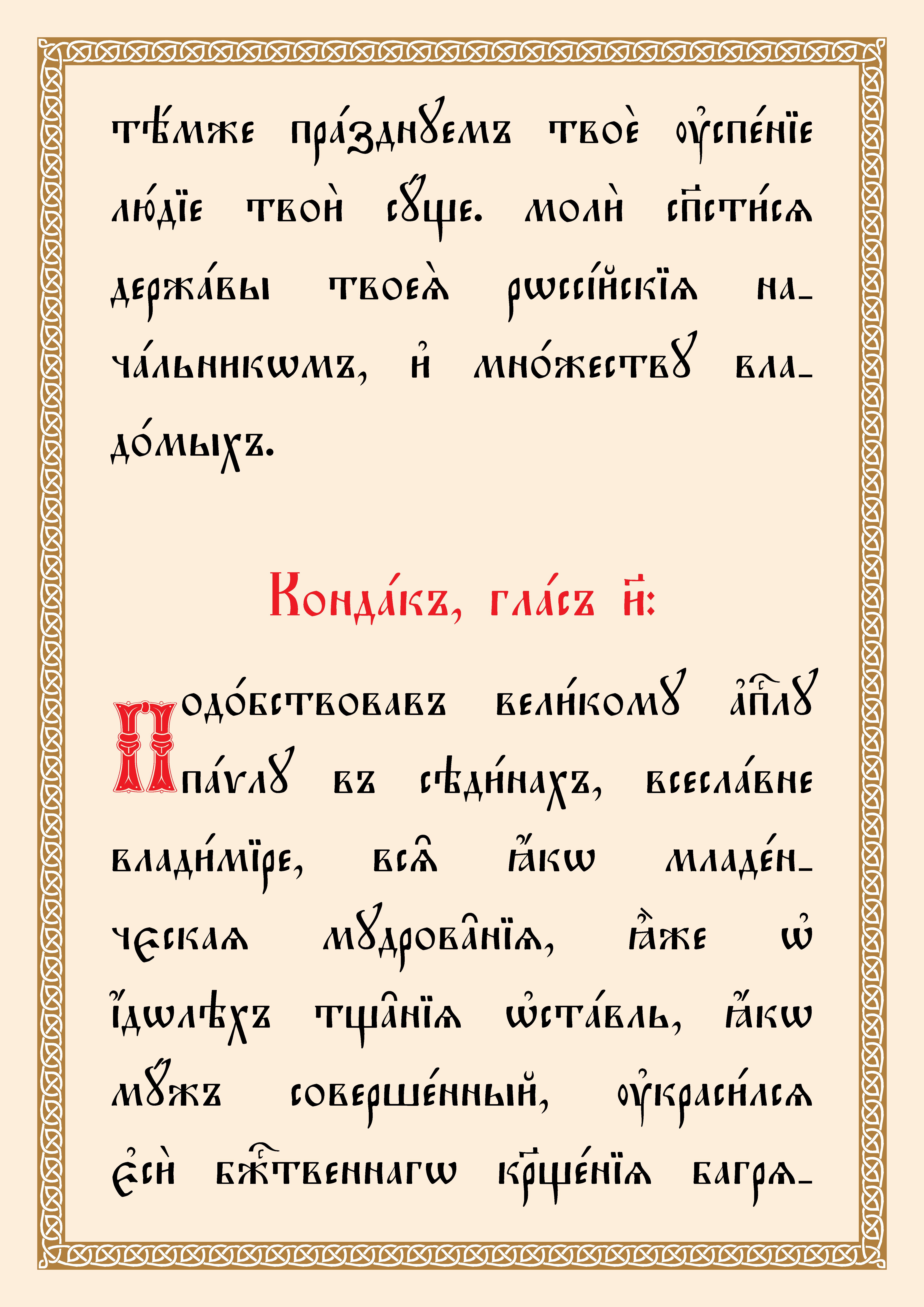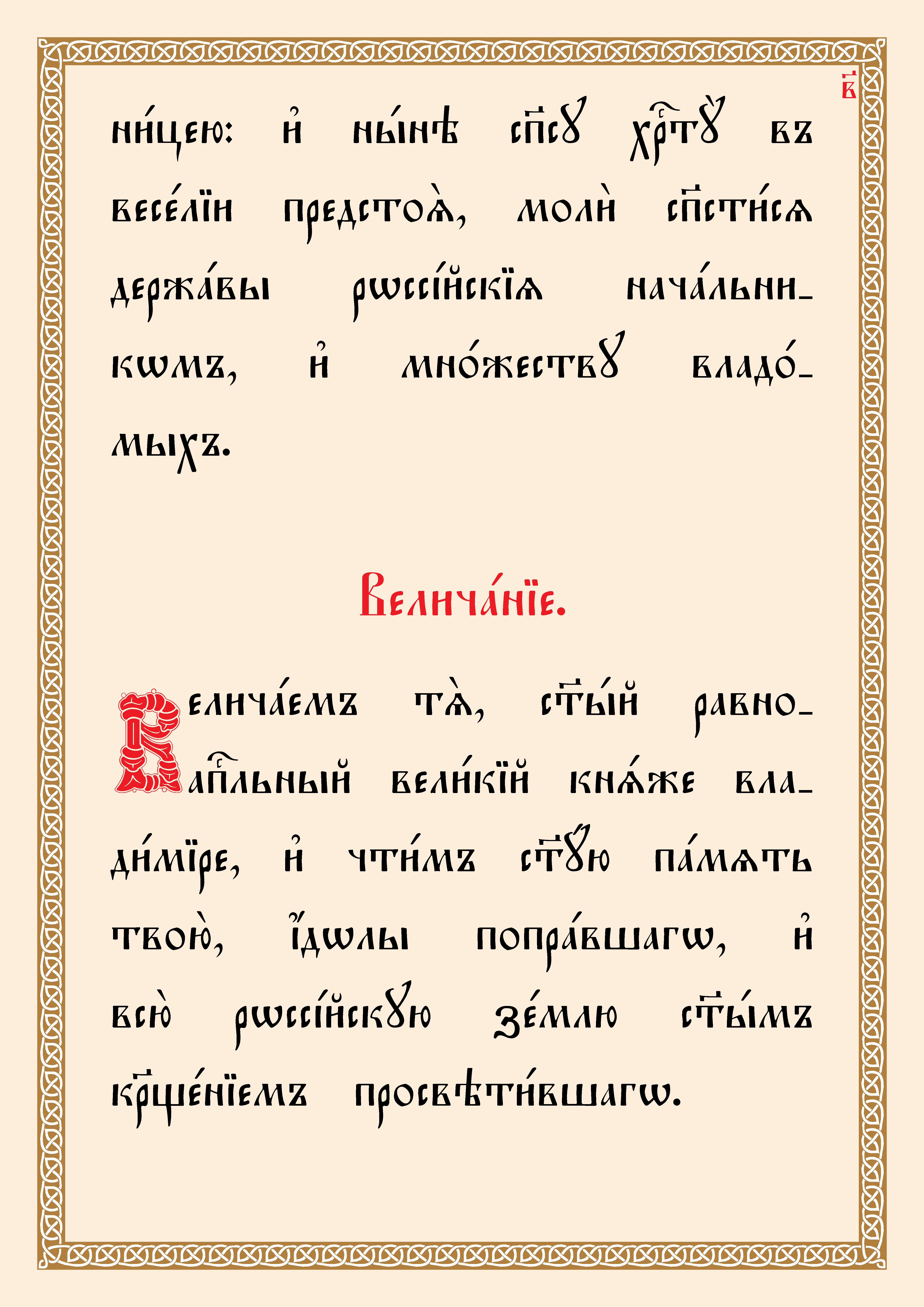 15 (28) июля. Тропарь, кондак, величание св. равноапостольному великому князю Владимиру