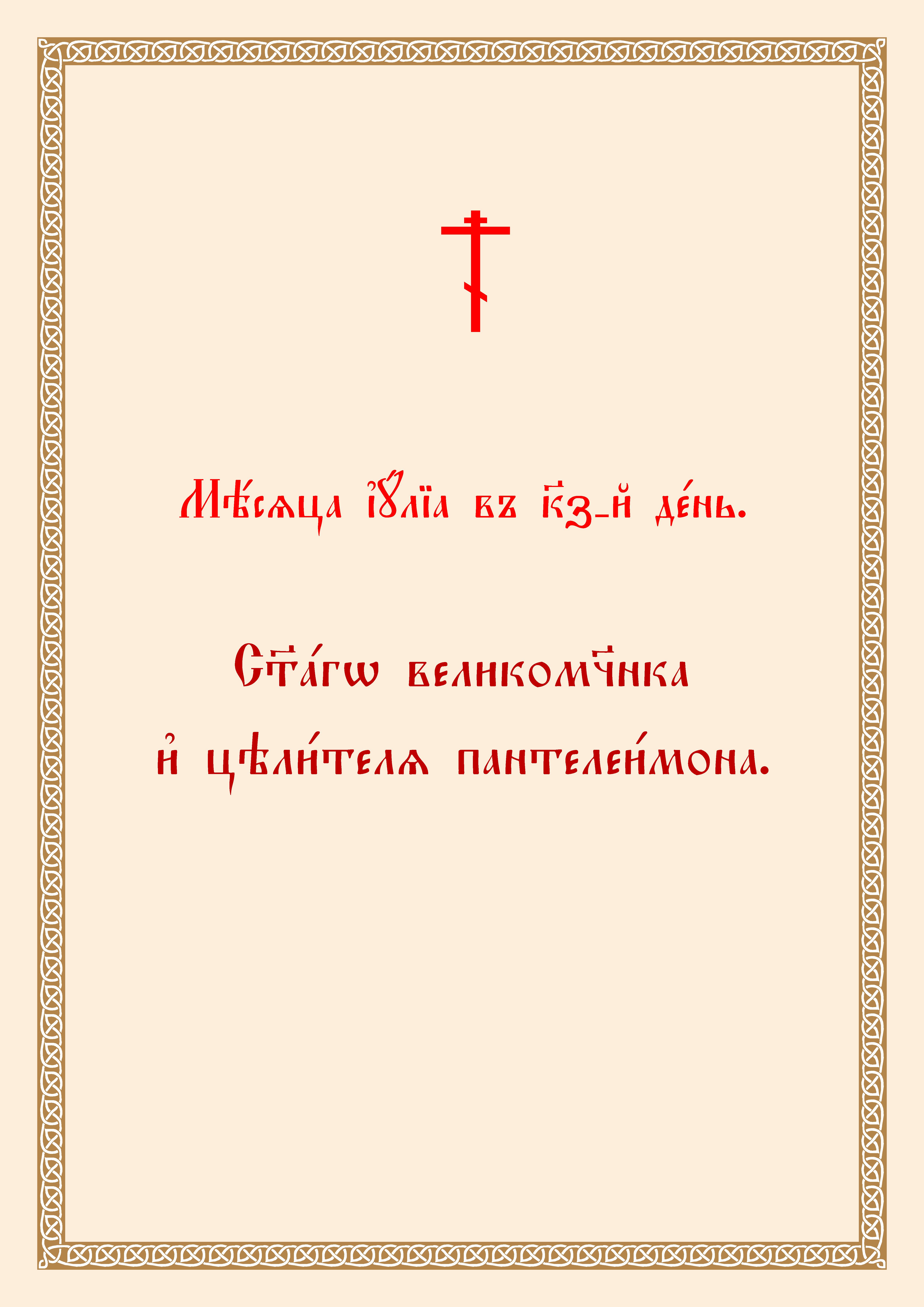 27 июля (9 августа н. ст.). Тропарь, кондак, величание великомученику и целителю Пантелеимону