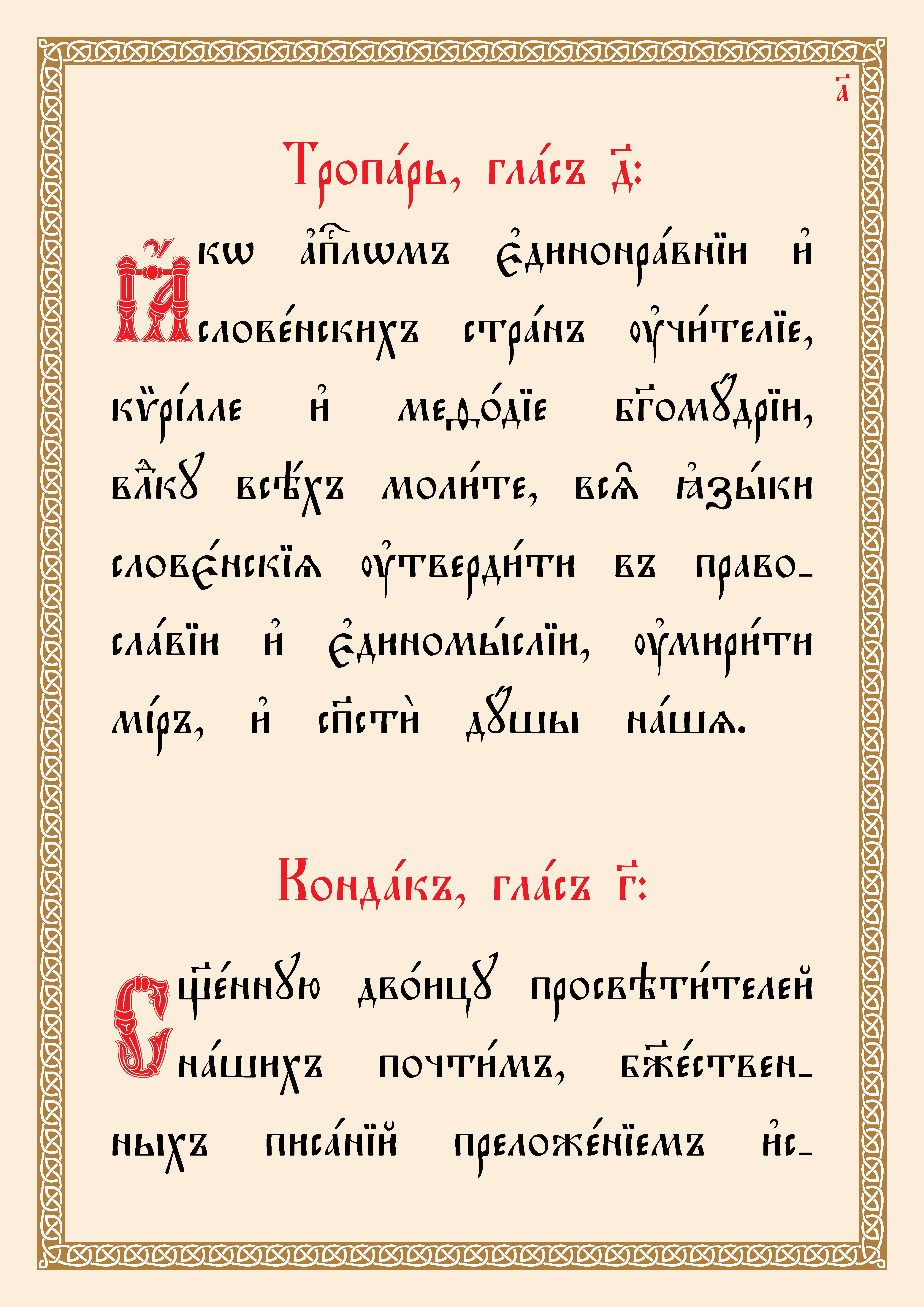 11 (24) мая. Тропарь, кондак, молитва, величание свв. равноапостольным Мефодию и Кириллу, учителям Словенским