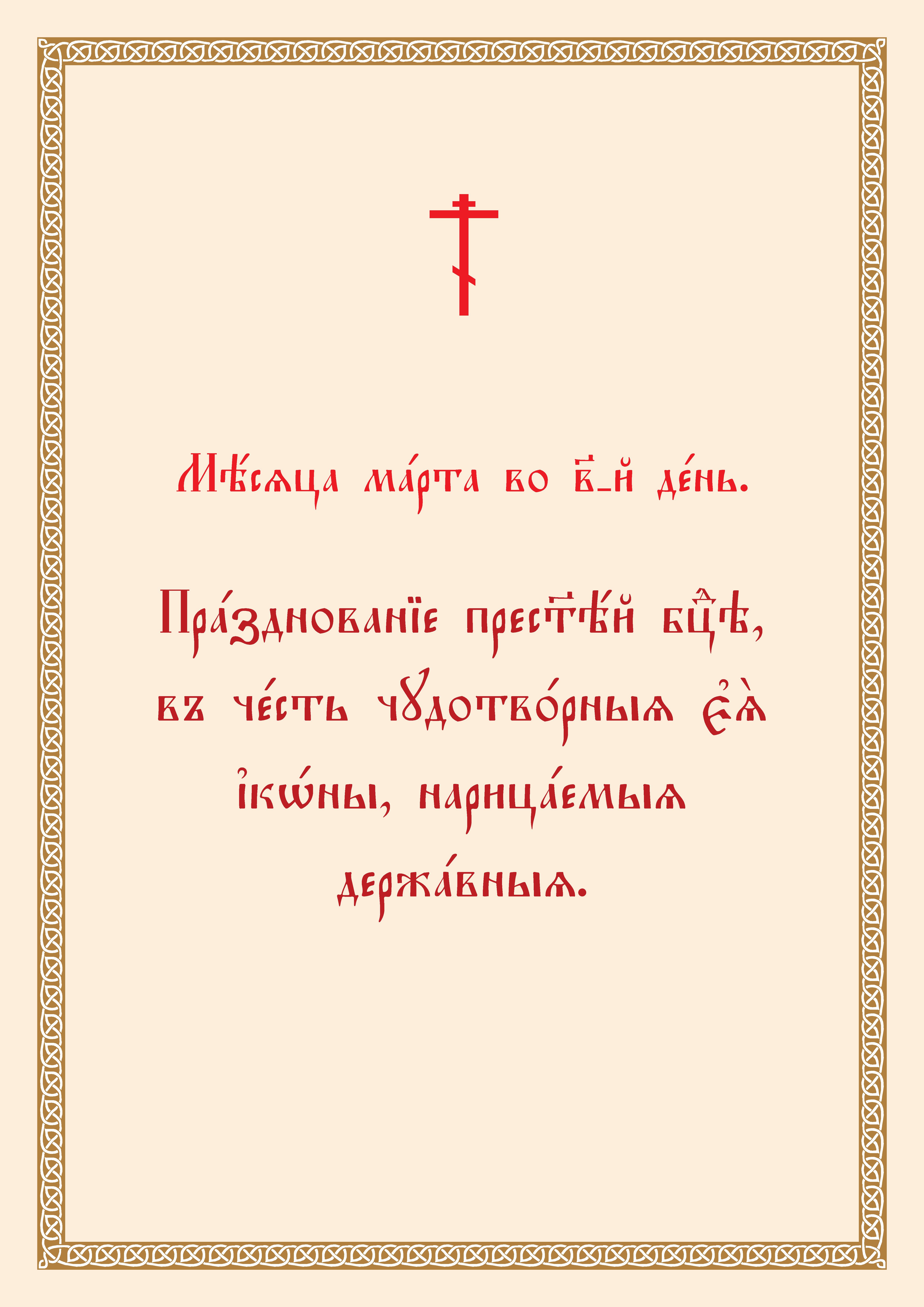 2 (15) марта. Тропарь Державной иконе Божией Матери