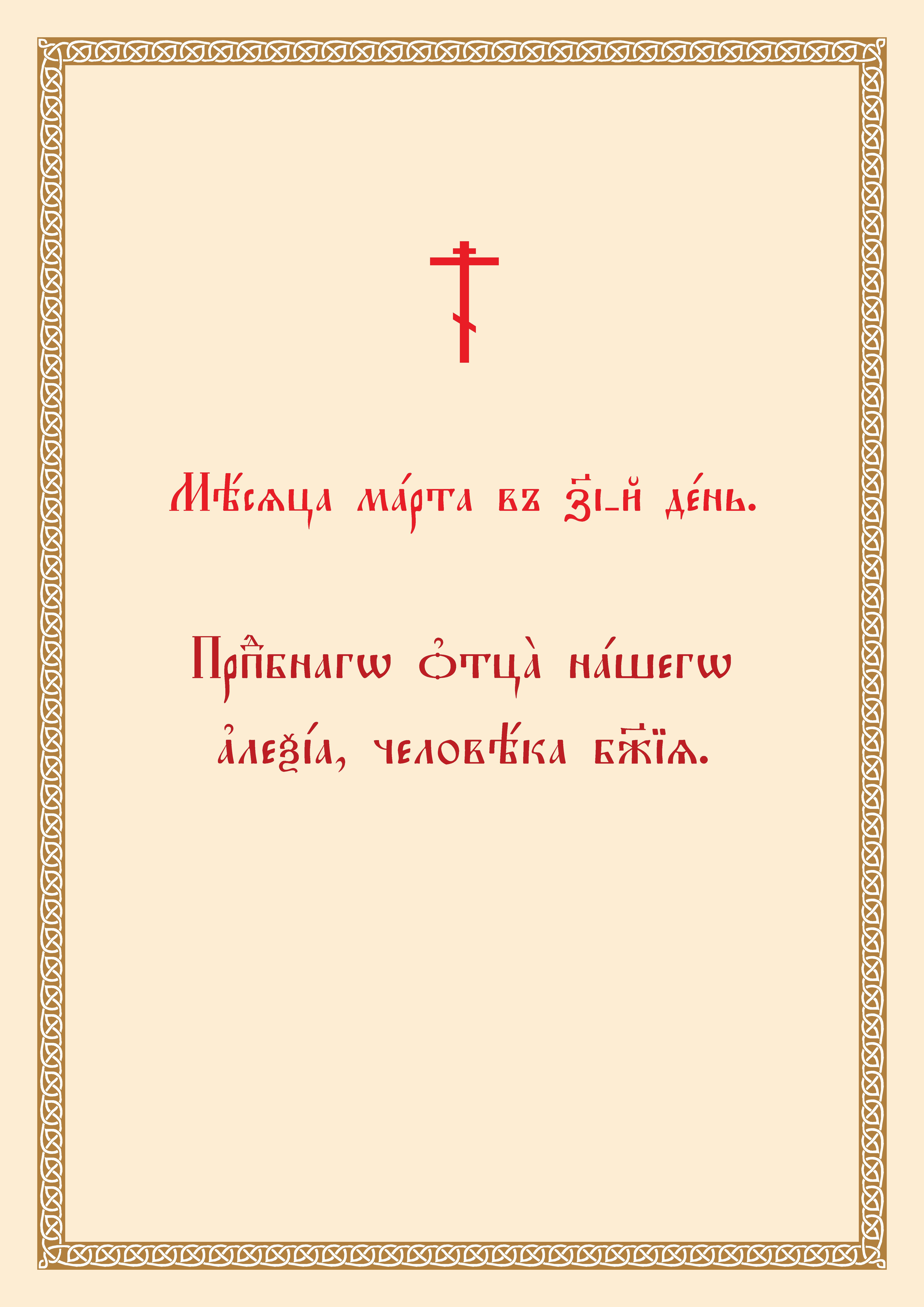 17 (30) марта. Тропарь, кондак, величание прп. Алексию, человеку Божию