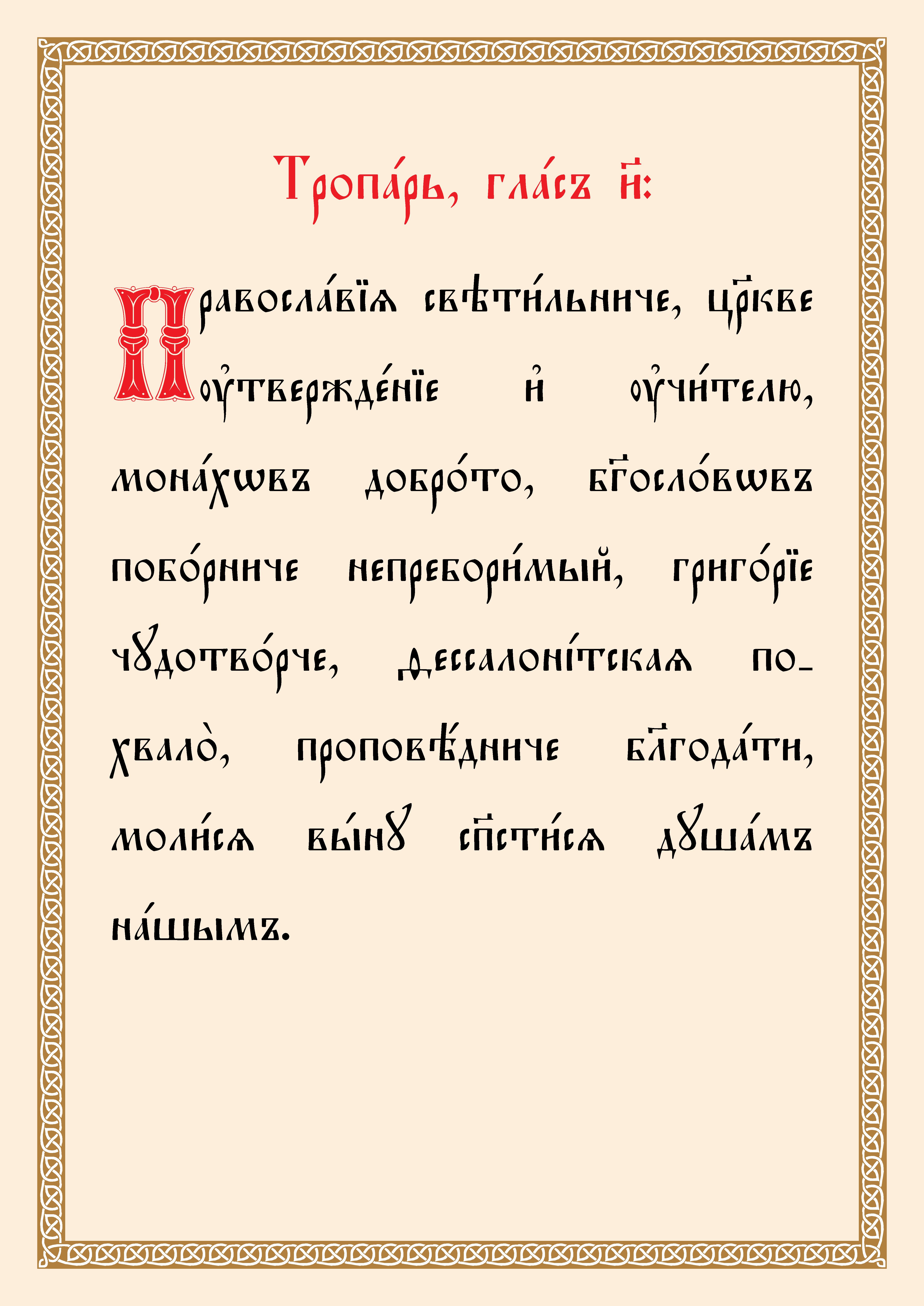 В Неделю 2-ю Великого поста. Тропарь, кондак свт. Григорию Паламе
