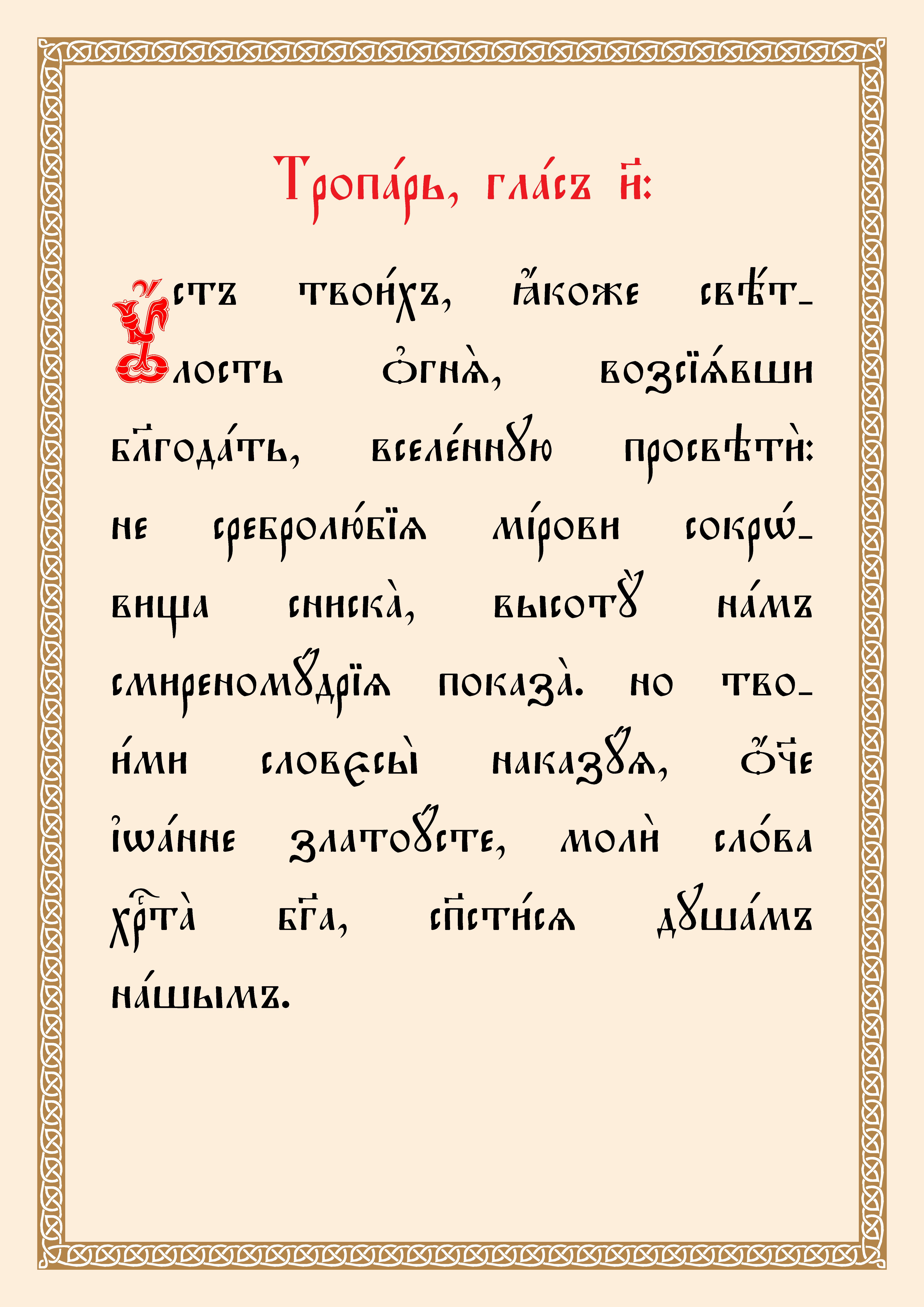 13 (26) ноября. Тропарь, кондак, величание свт. Иоанну Златоусту, архиепископу Константинопольскому