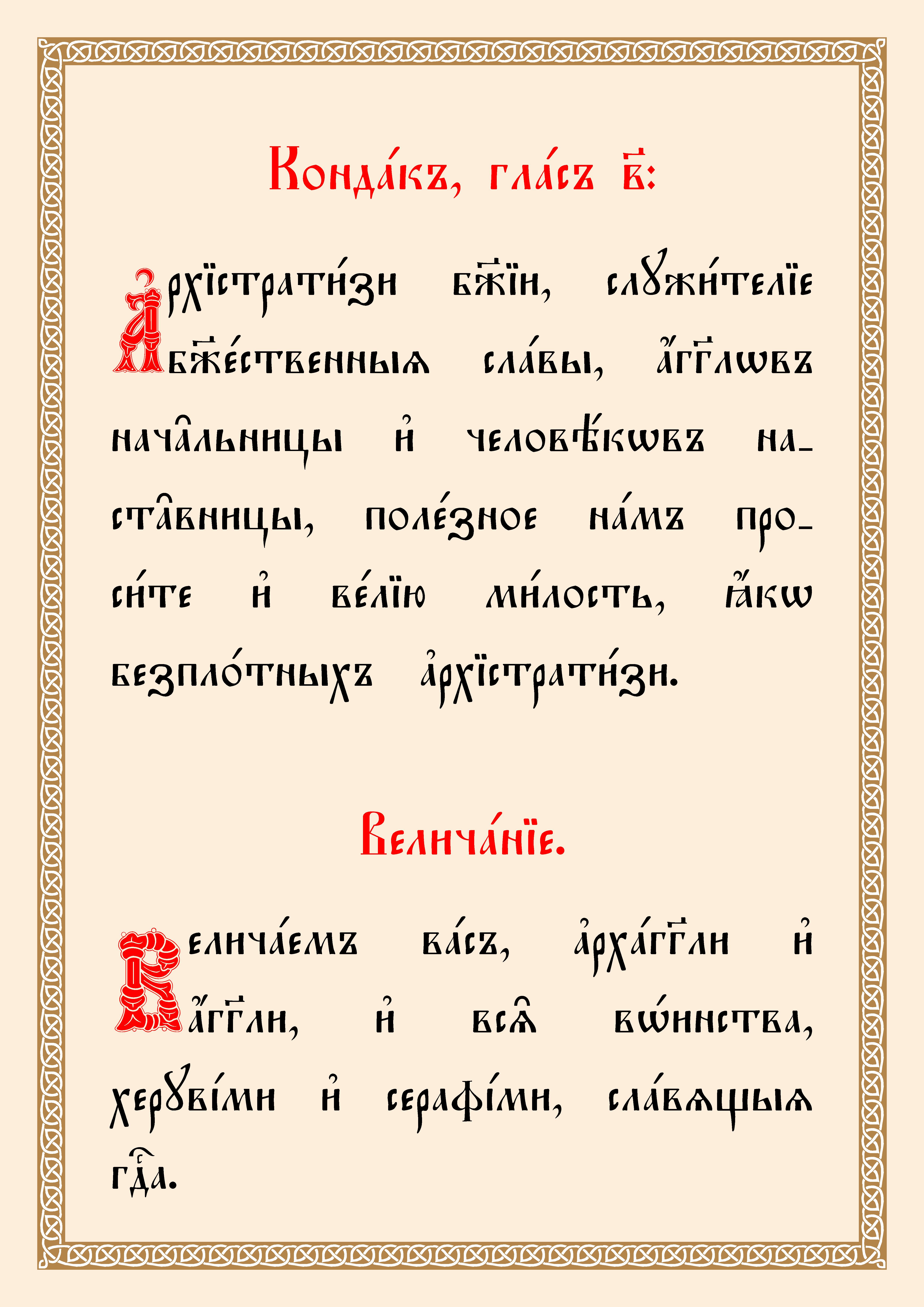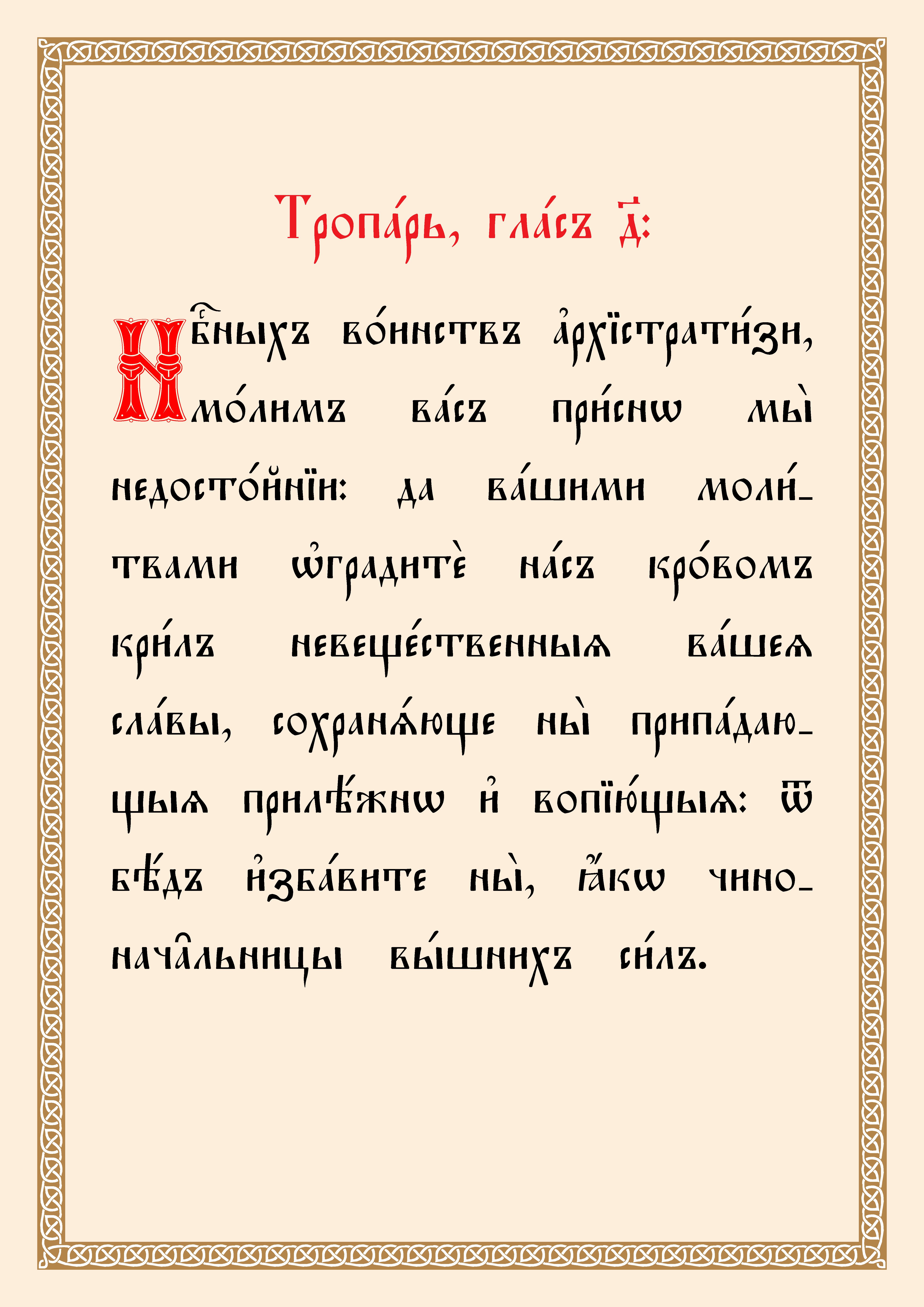 8 (21) ноября. Тропарь, кондак, величание Собору Архистратига Михаила и прочих Небесных Сил бесплотных