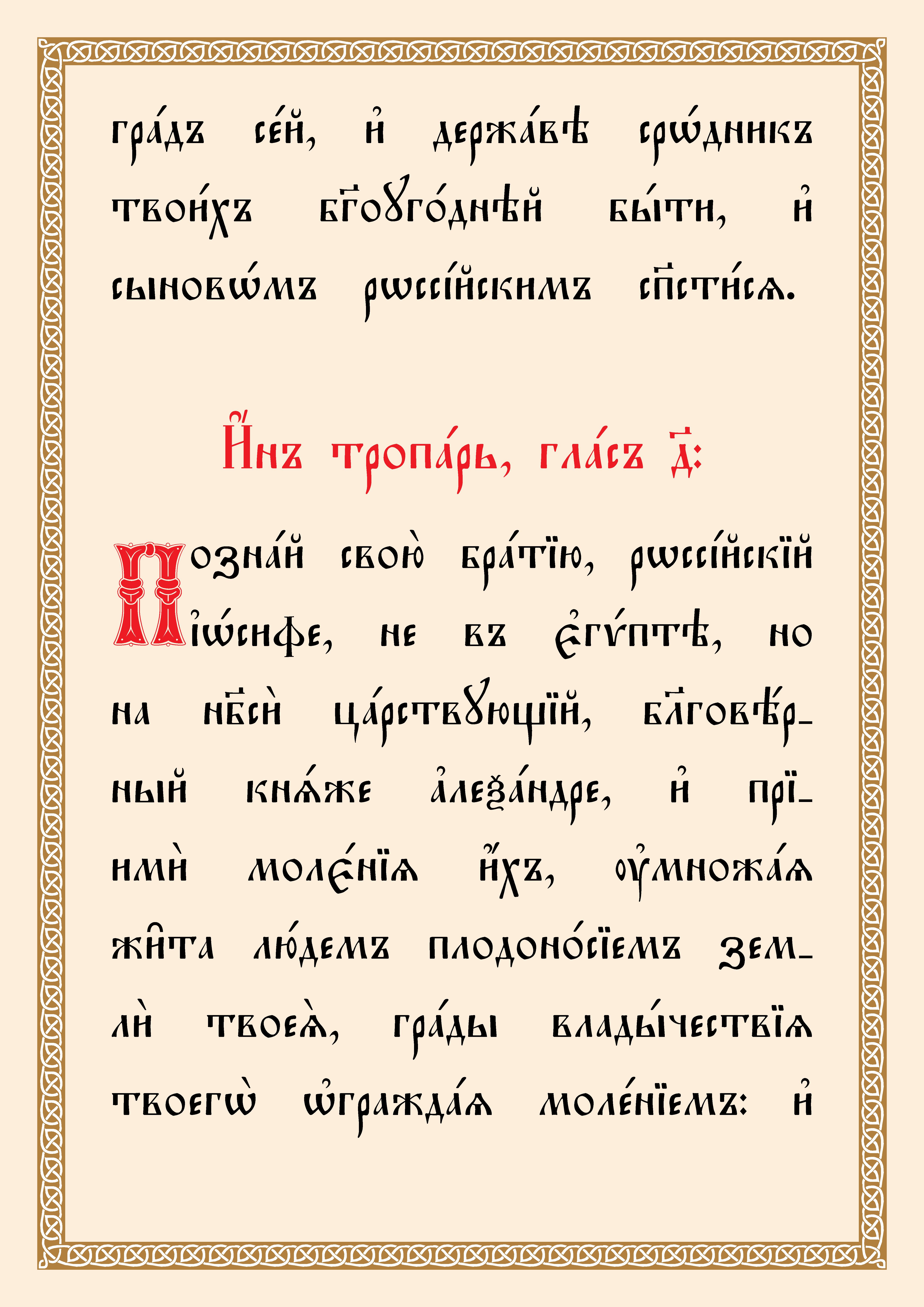 23 ноября (6 декабря н. ст.). Тропарь, кондак, величание св. благоверному великому князю Александру Невскому