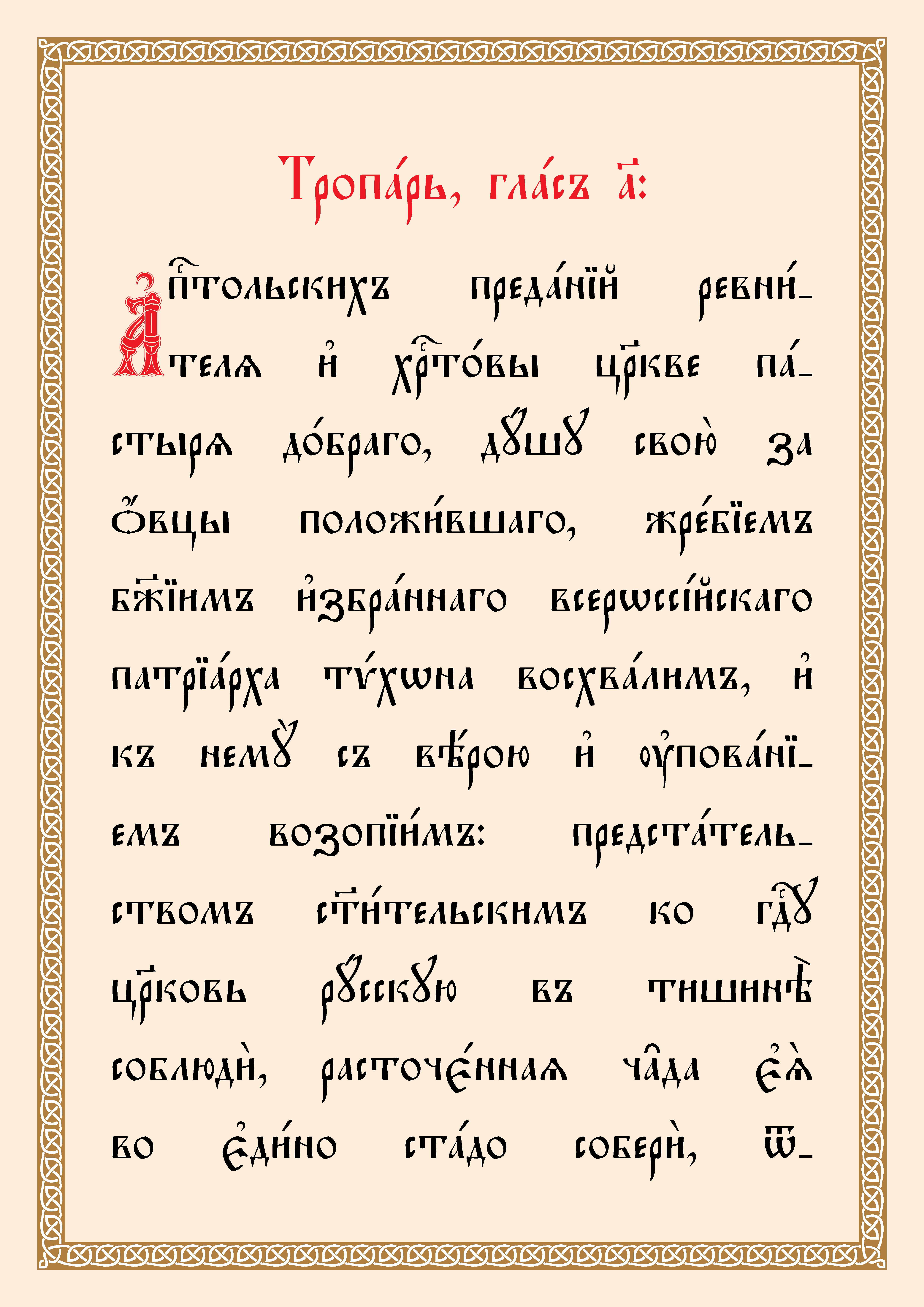 26 сентября (9 октября н. ст.). Тропарь, кондак, величание свт. Тихону, Патриарху Московскому и всея России