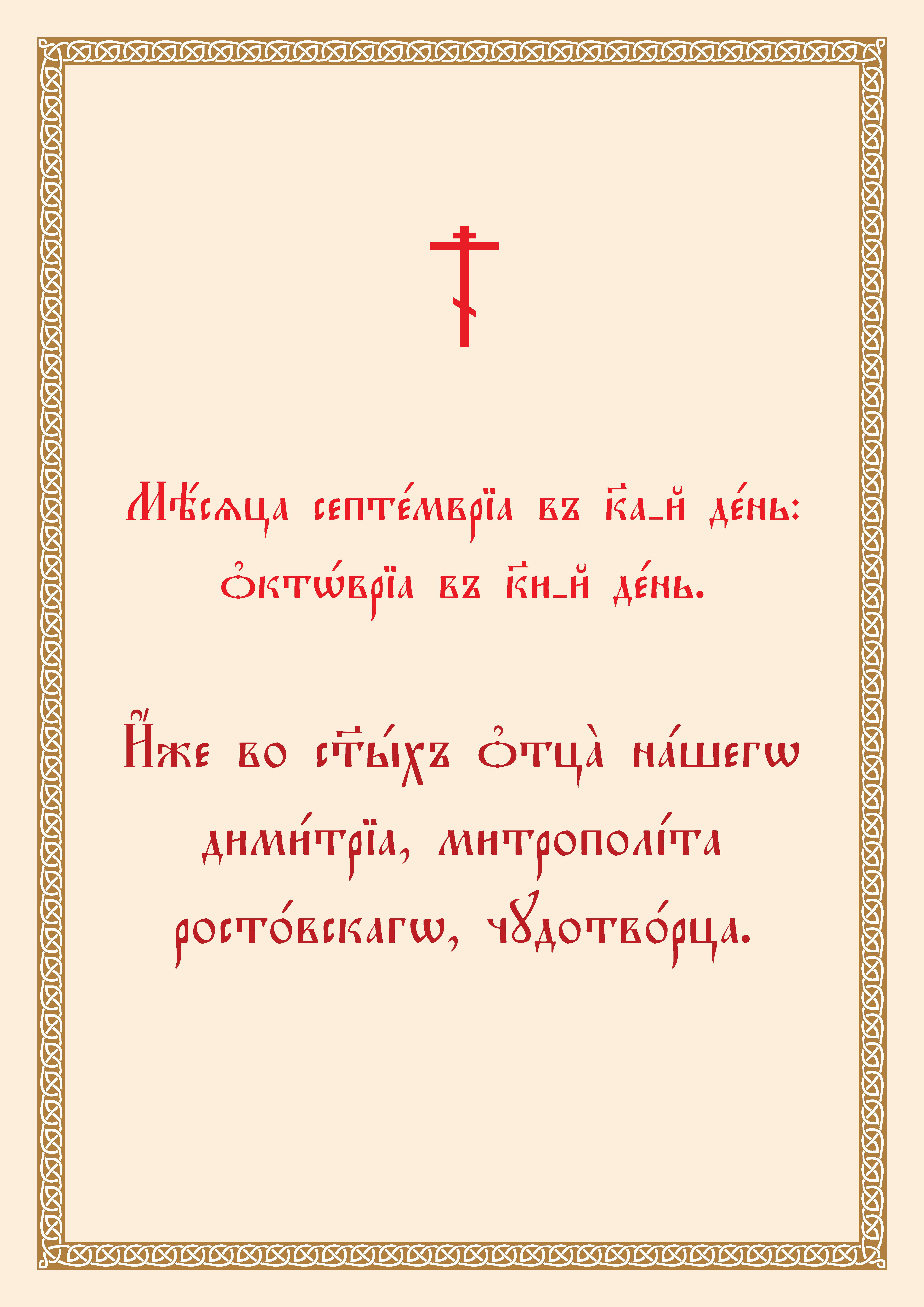 21 сентября (4 октября н. ст.). Тропарь, кондак, величание свт. Димитрию, митрополиту Ростовскому
