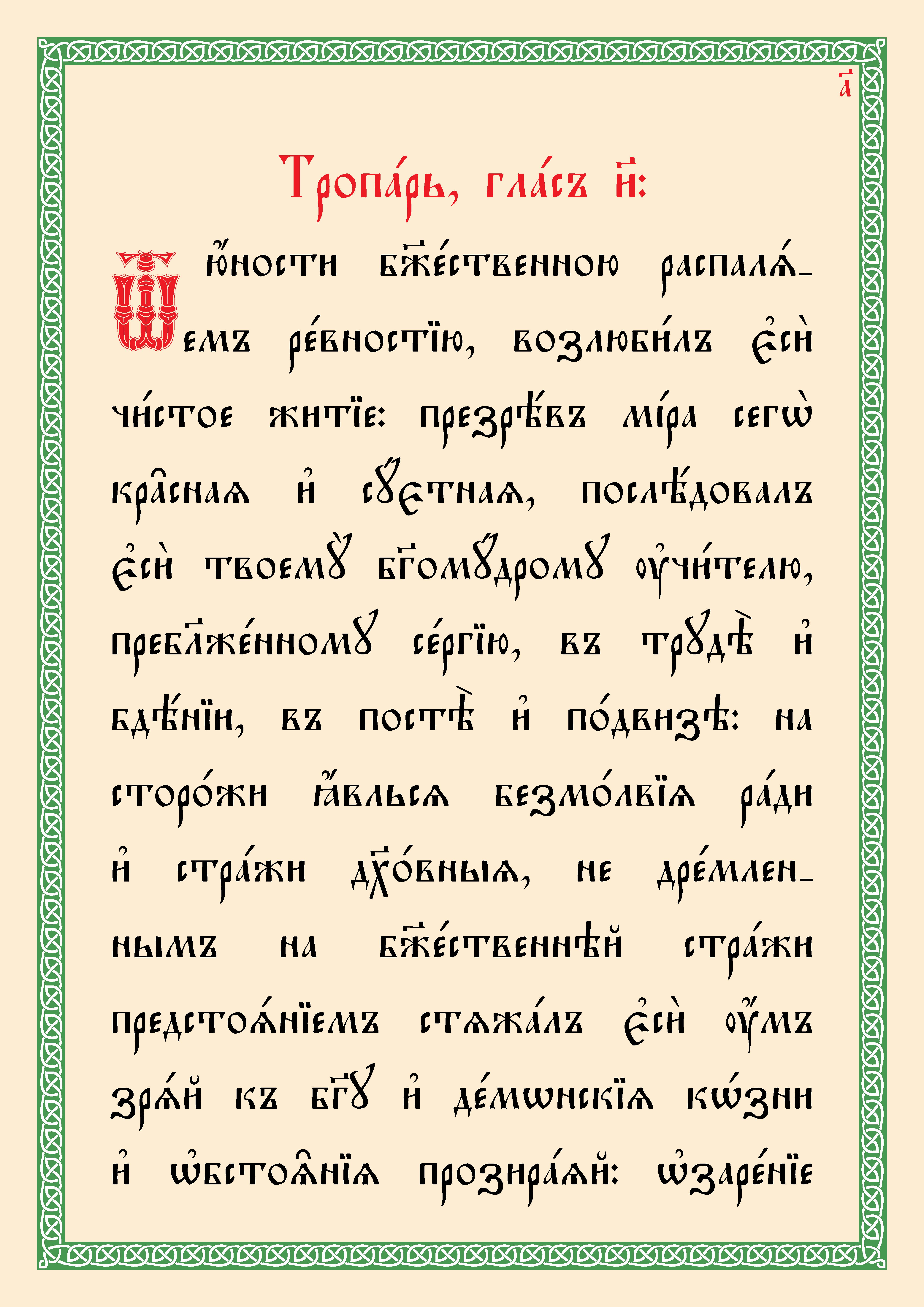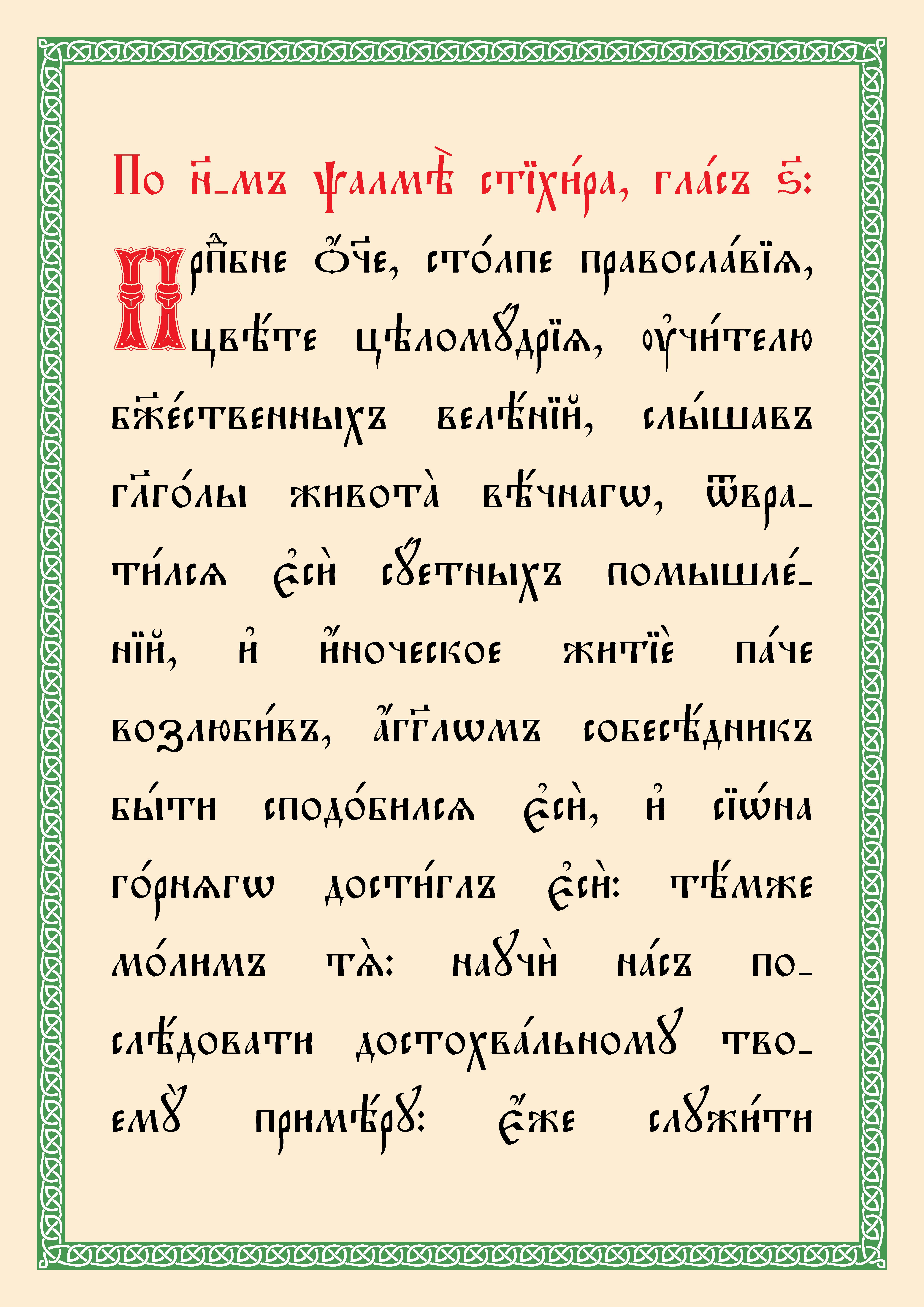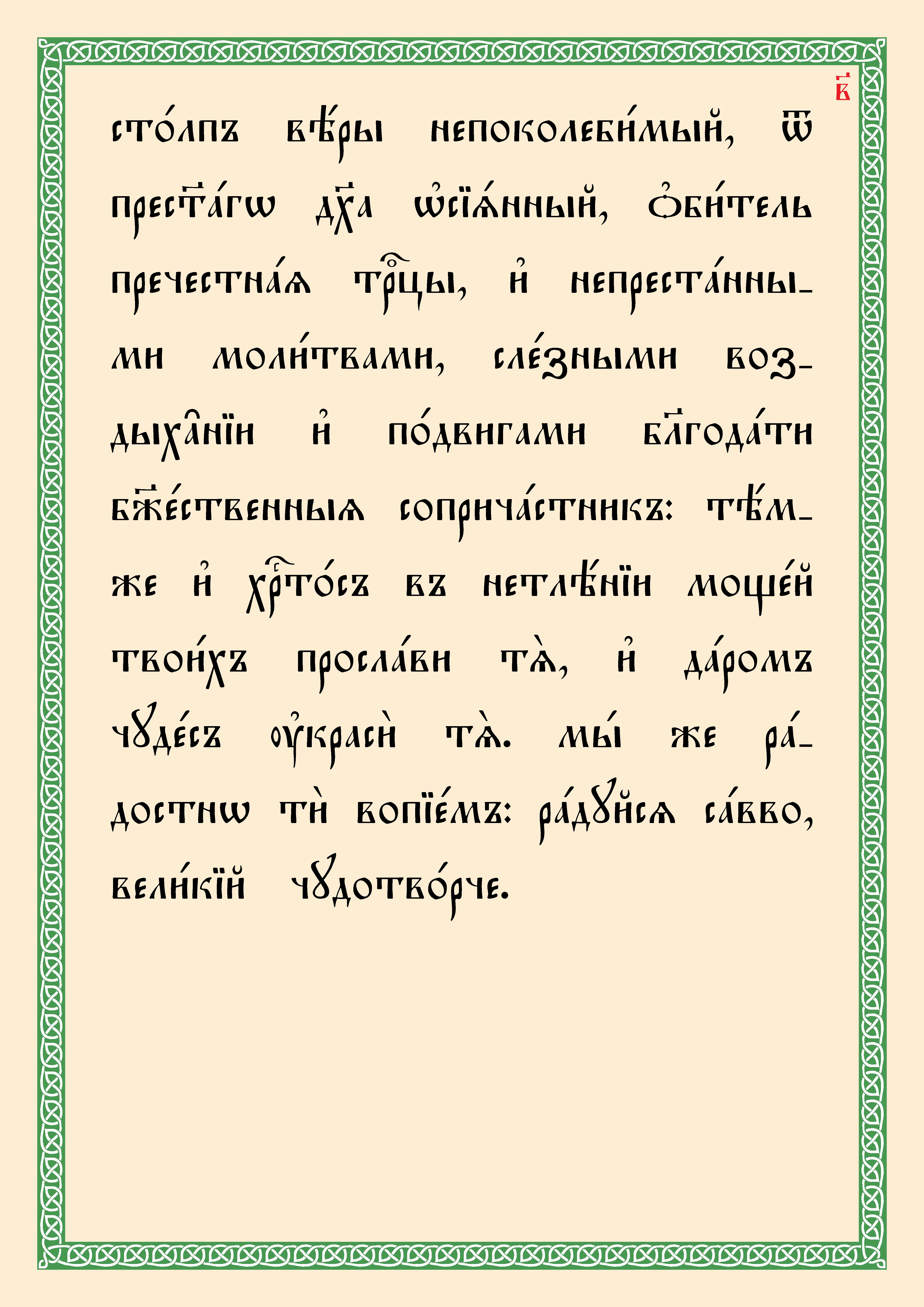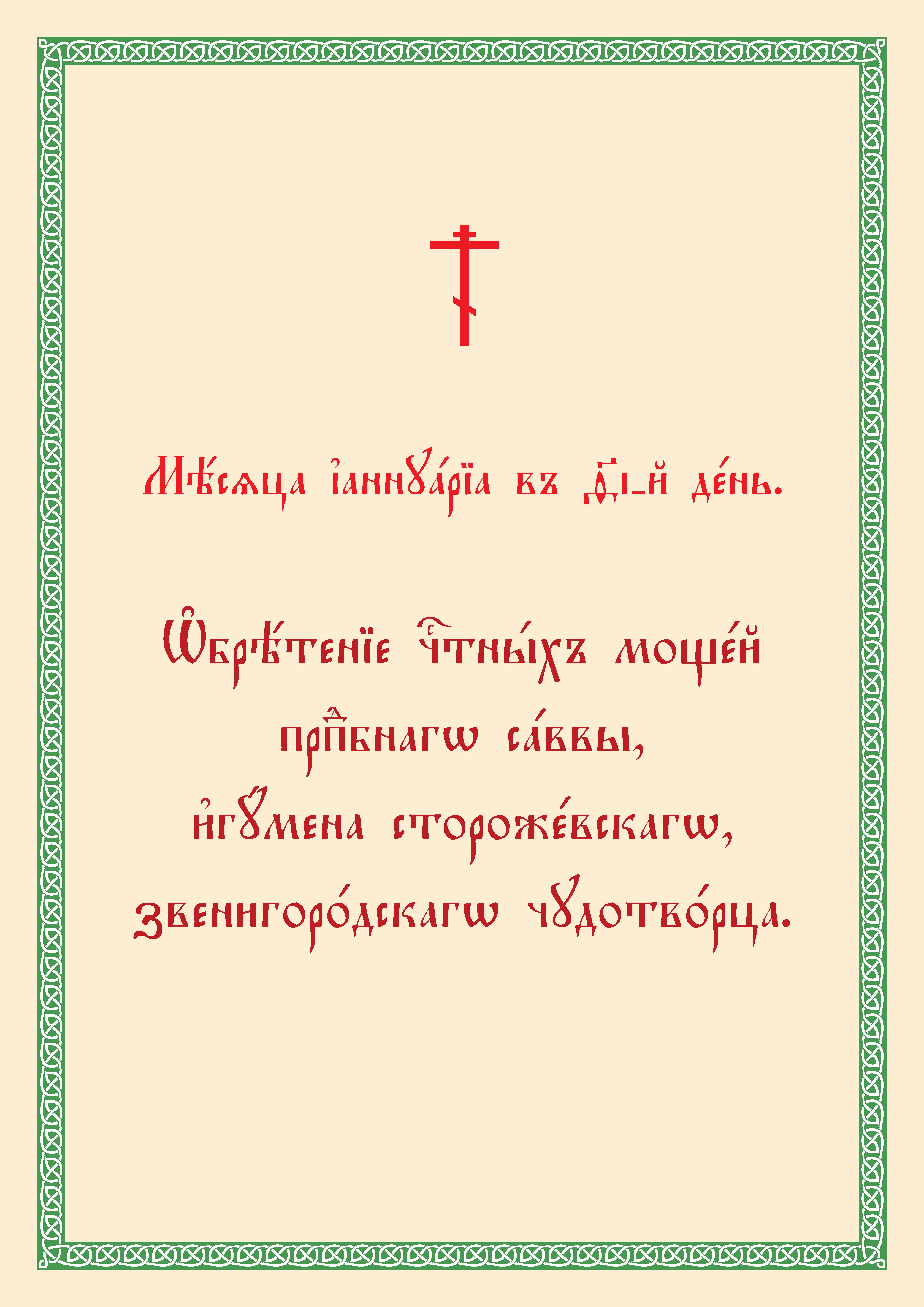 19 января (1 февраля н. ст.). Тропарь, кондак, стихира, величание обретению мощей прп. Саввы Сторожевского