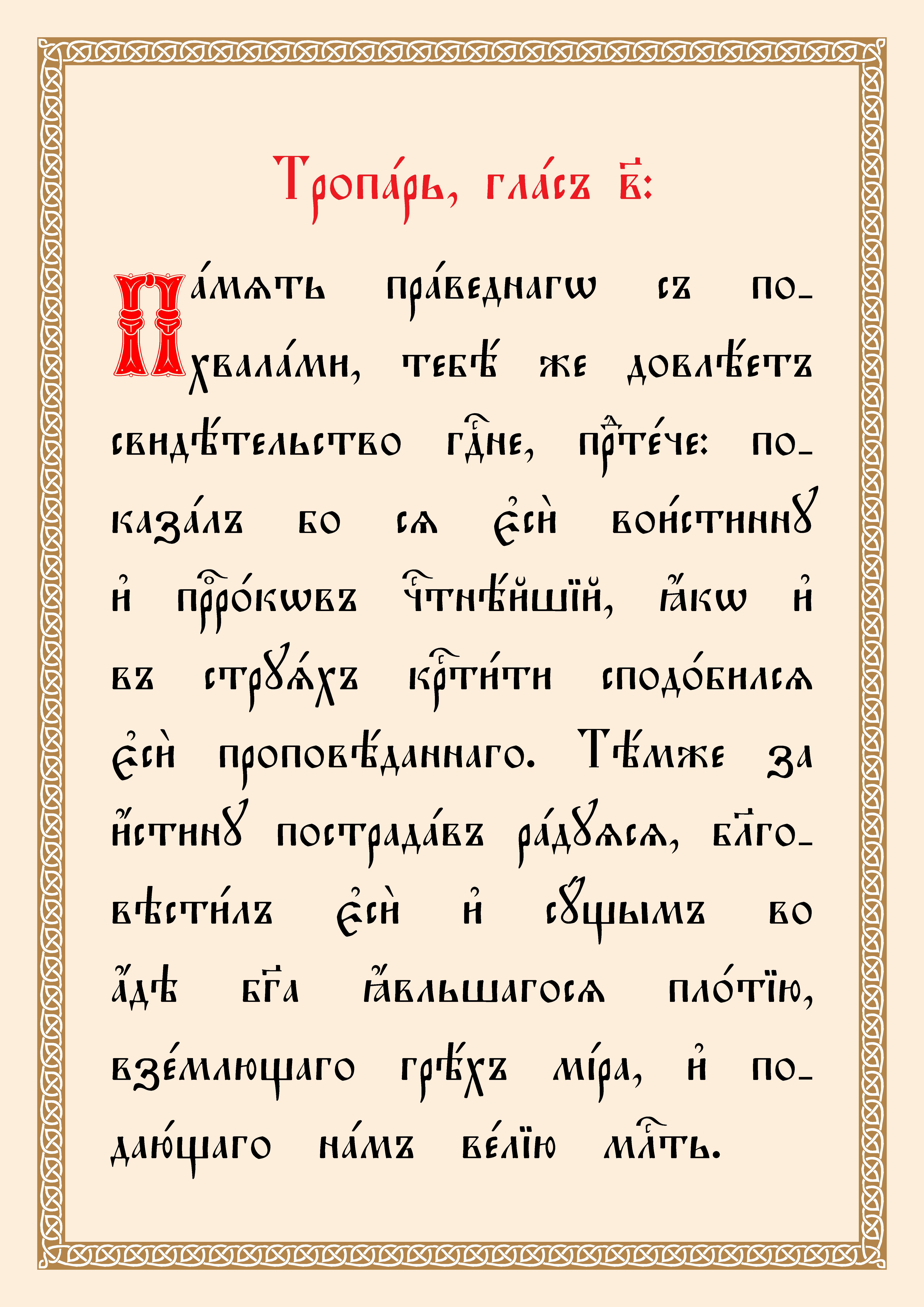 7 (20) января. Тропарь и кондак св. Иоанну, Предтече и Крестителю Господню