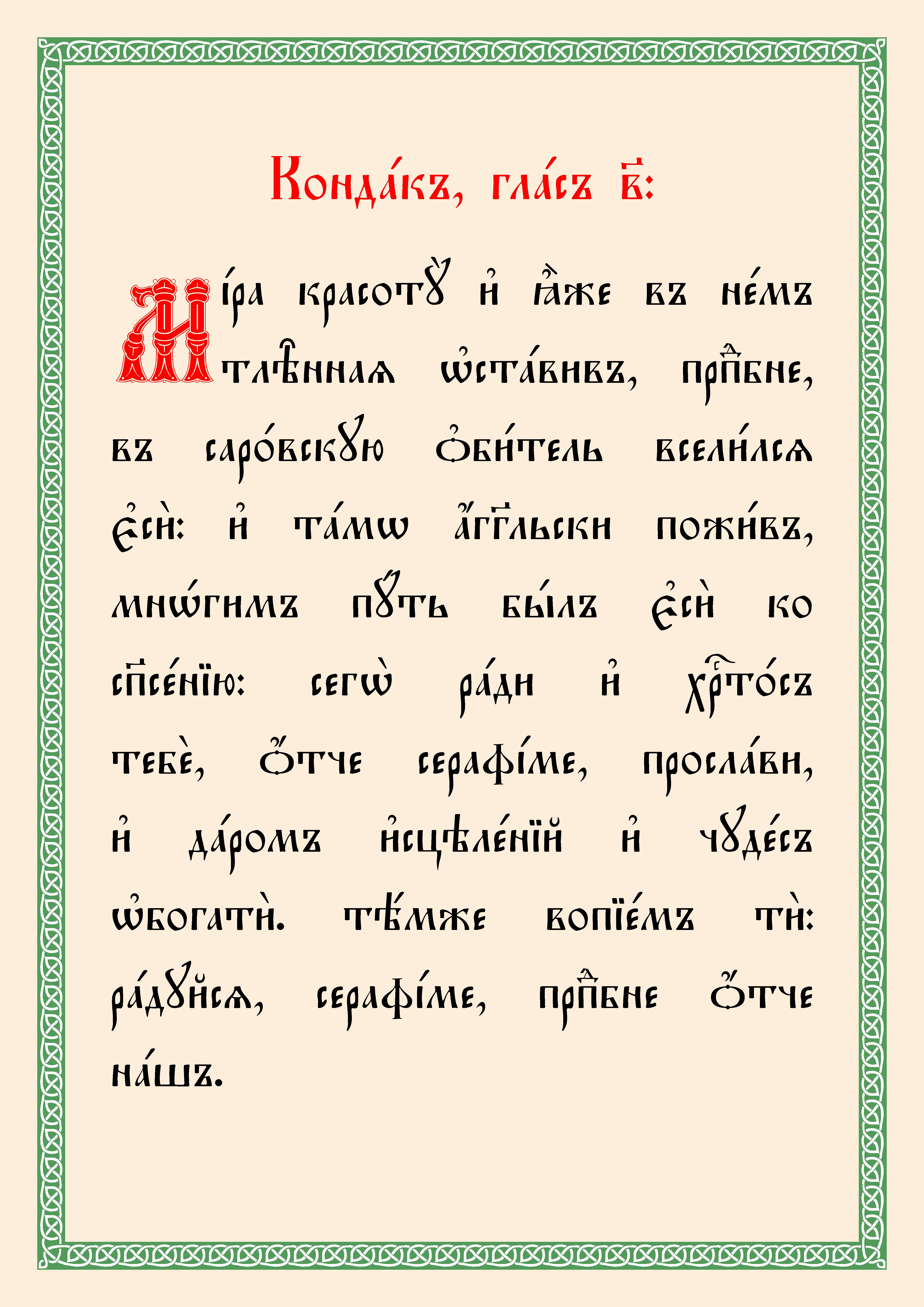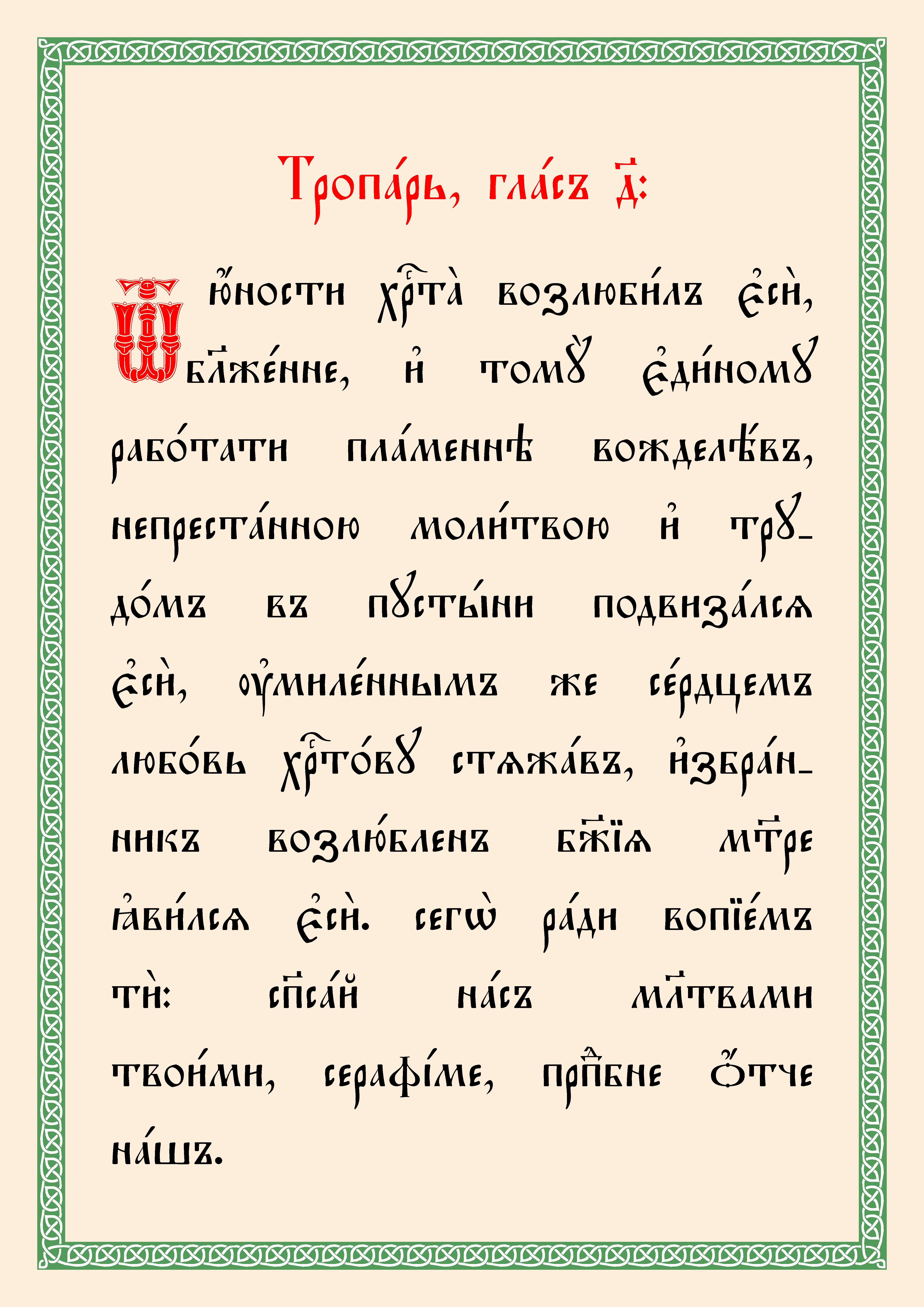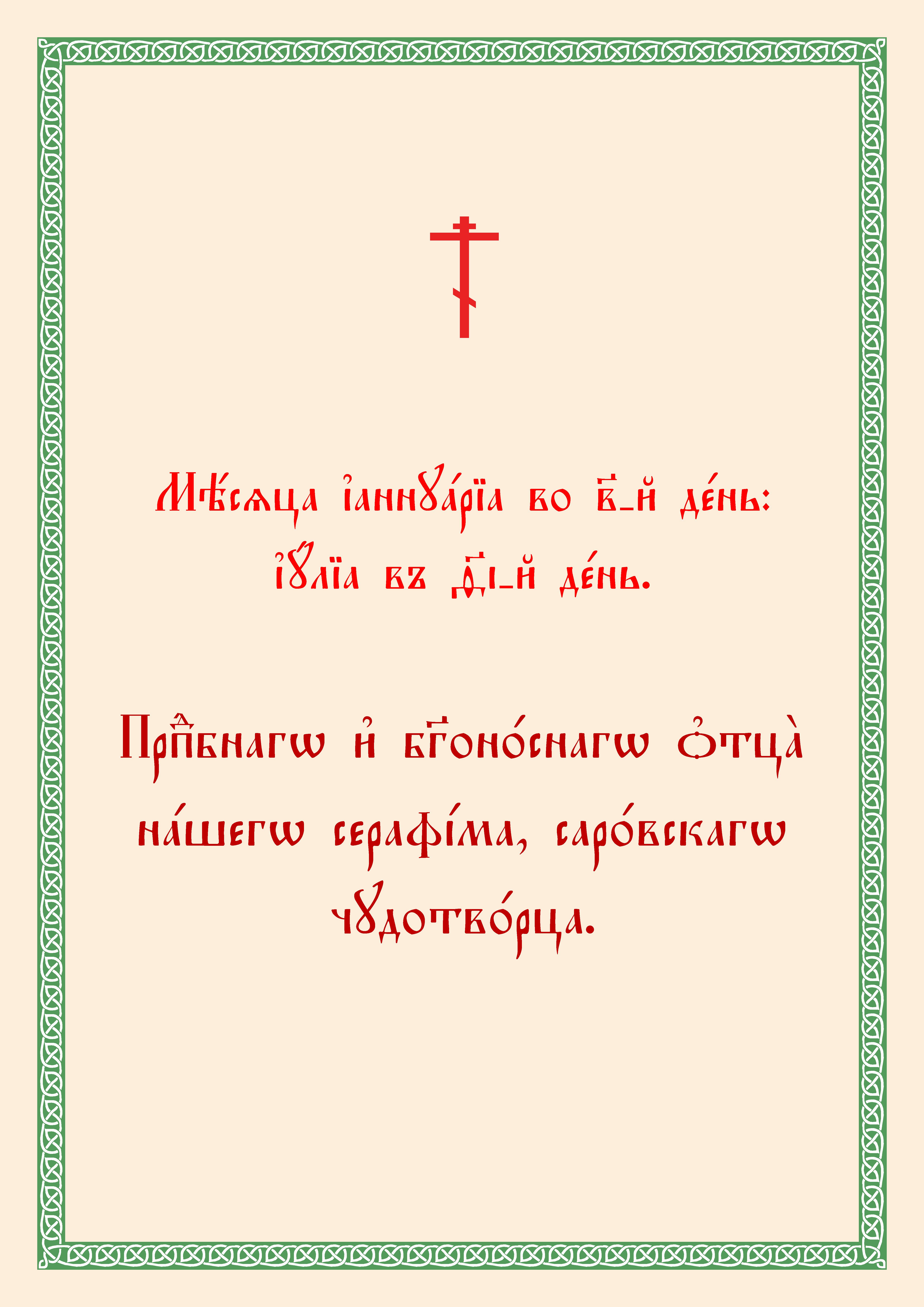 2 (15) января. Тропарь, кондак, величание прп. Серафиму Саровскому