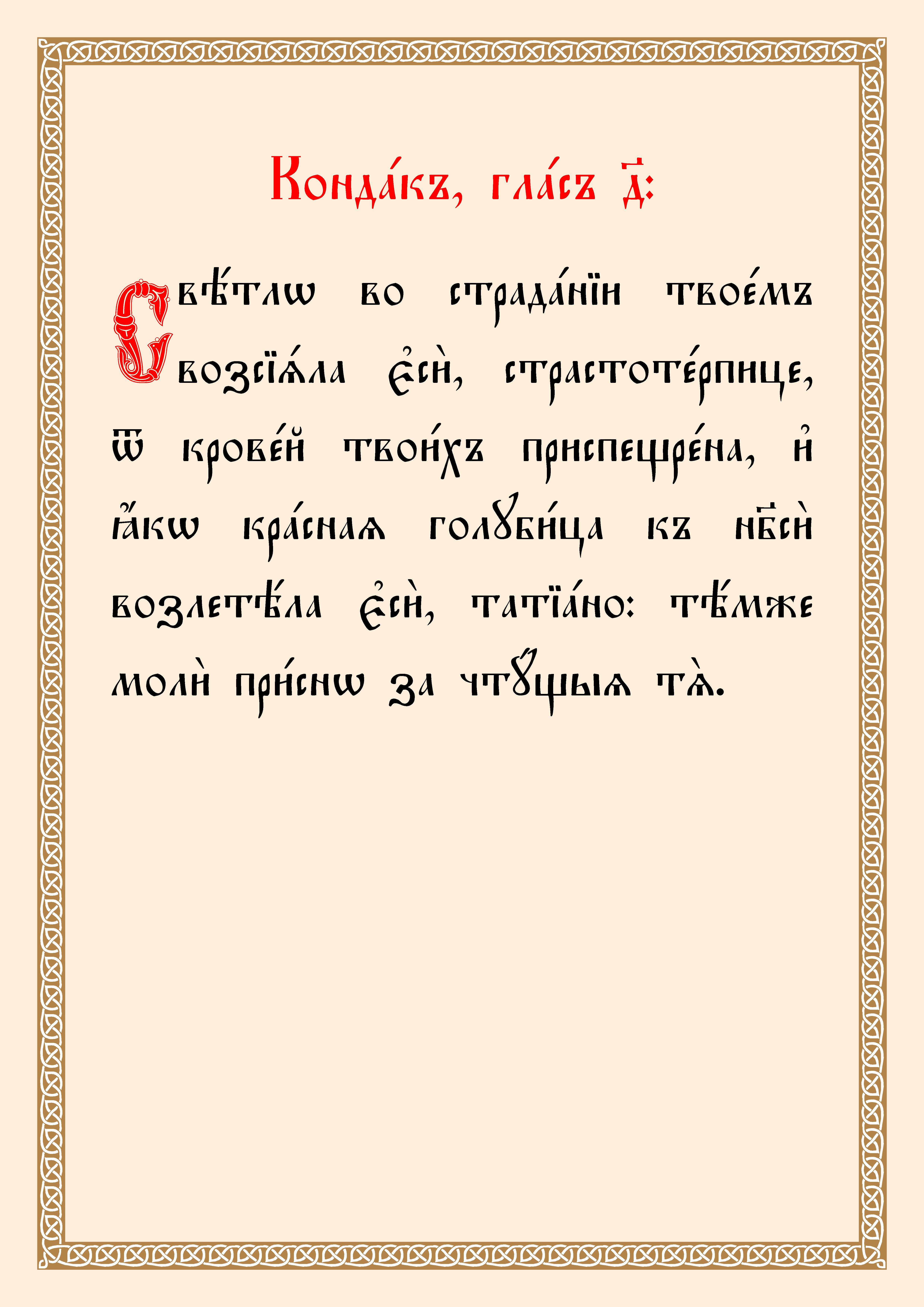 12 (25) января. Кондак, величание св. мученице Татиане Римской