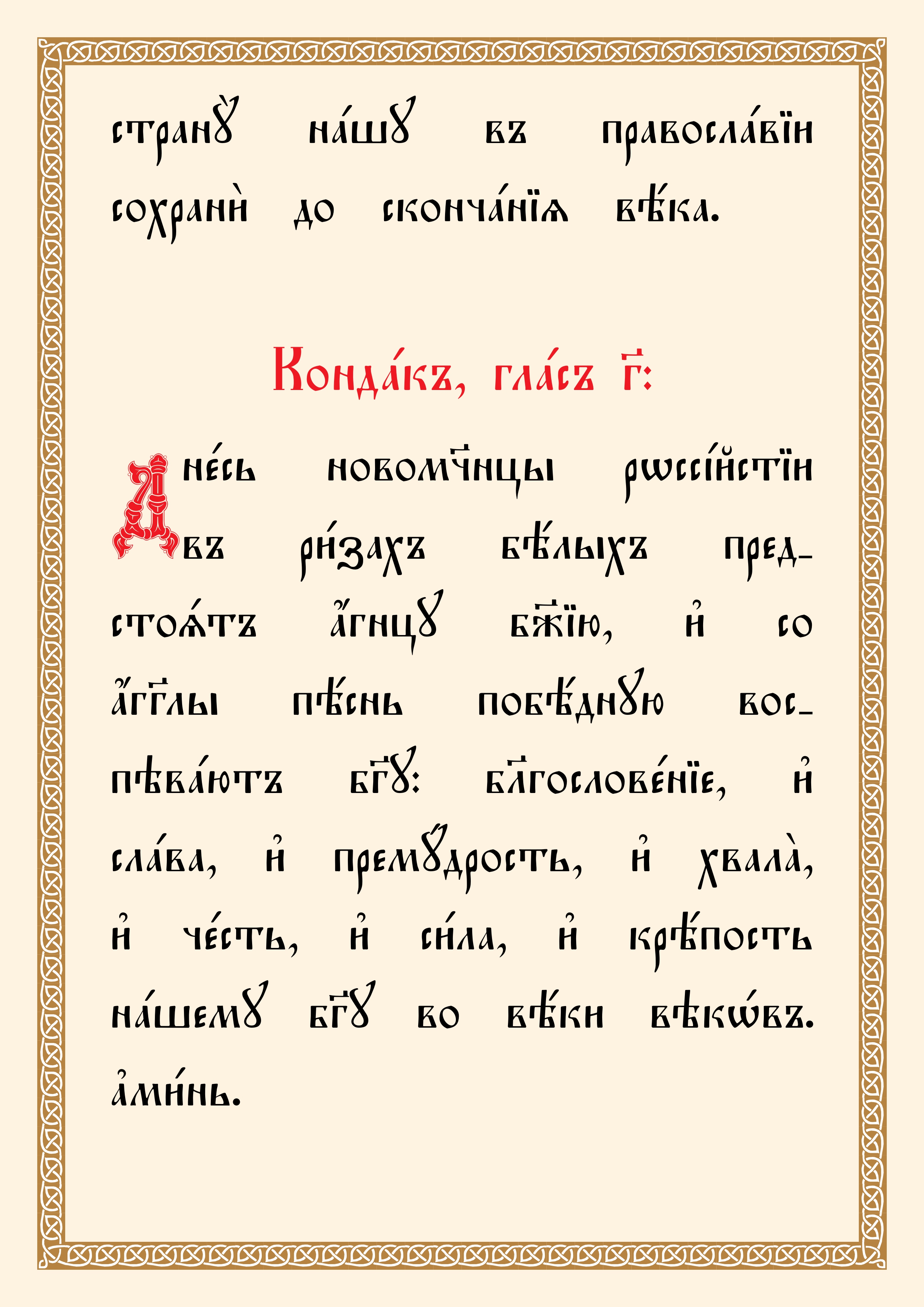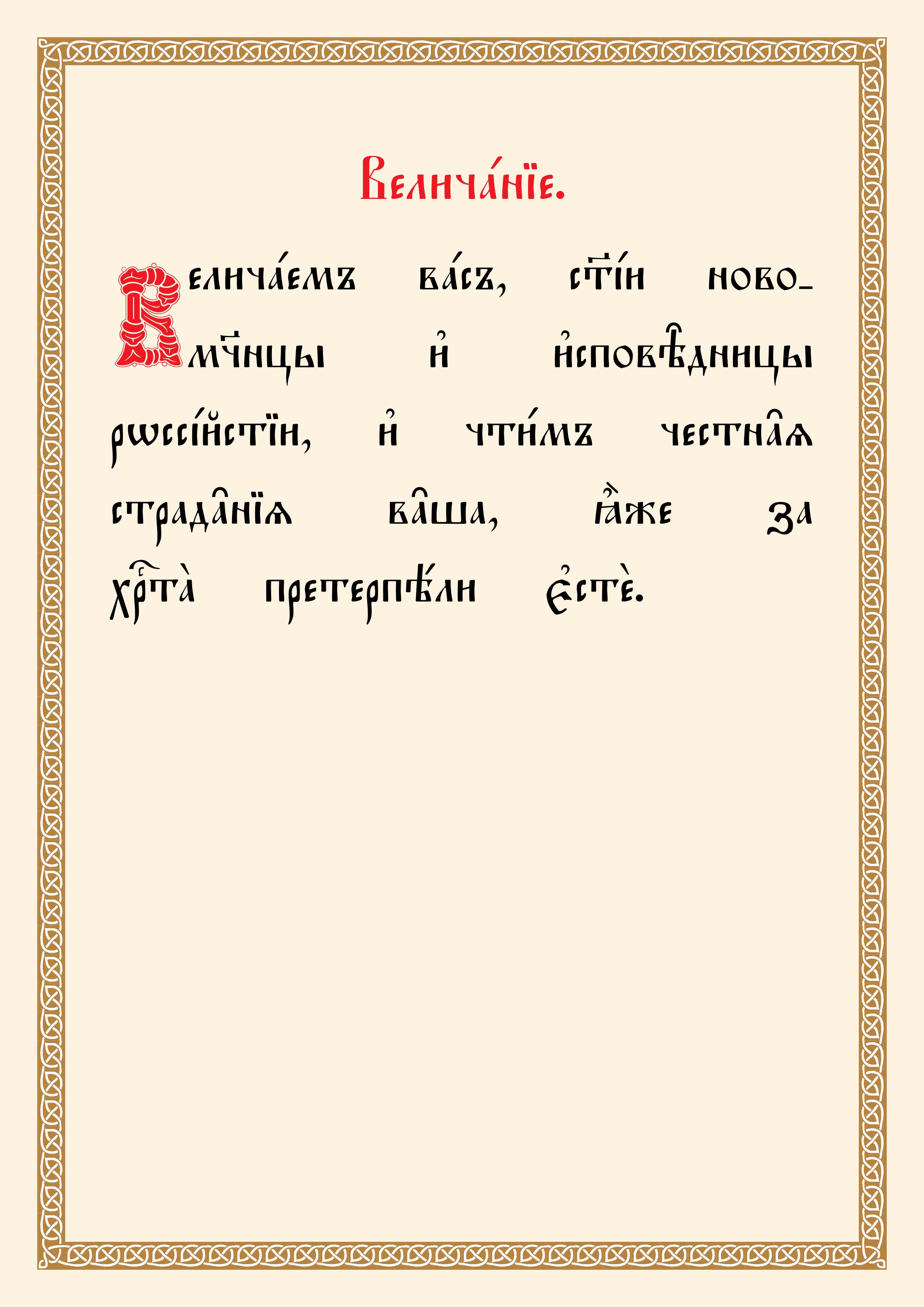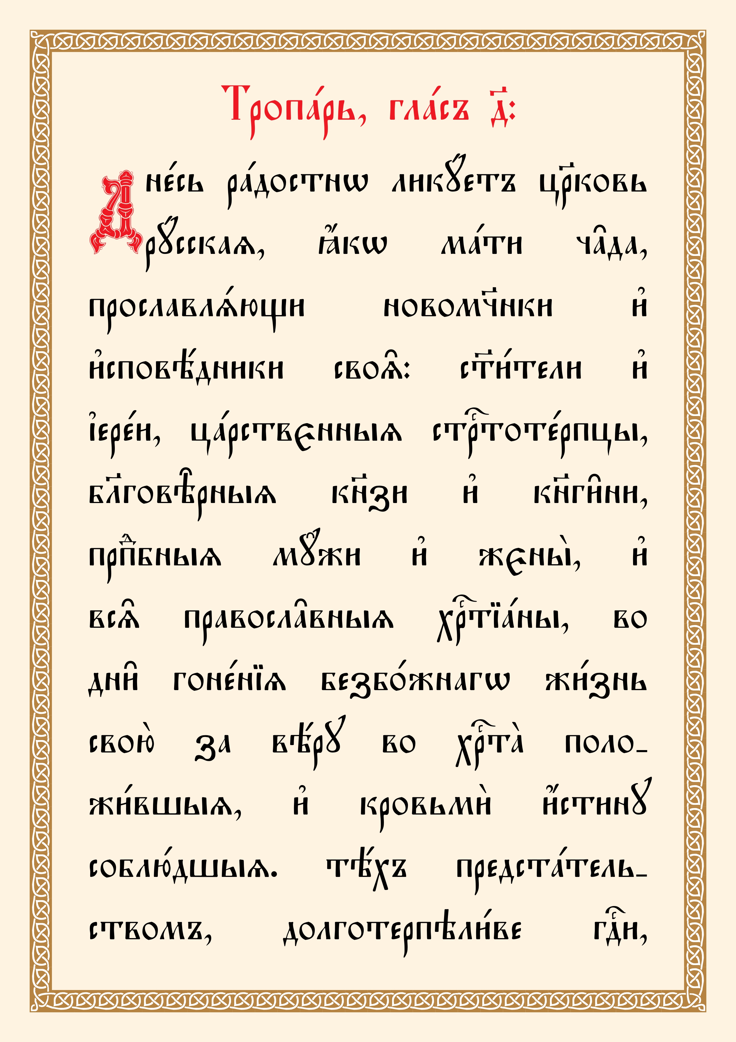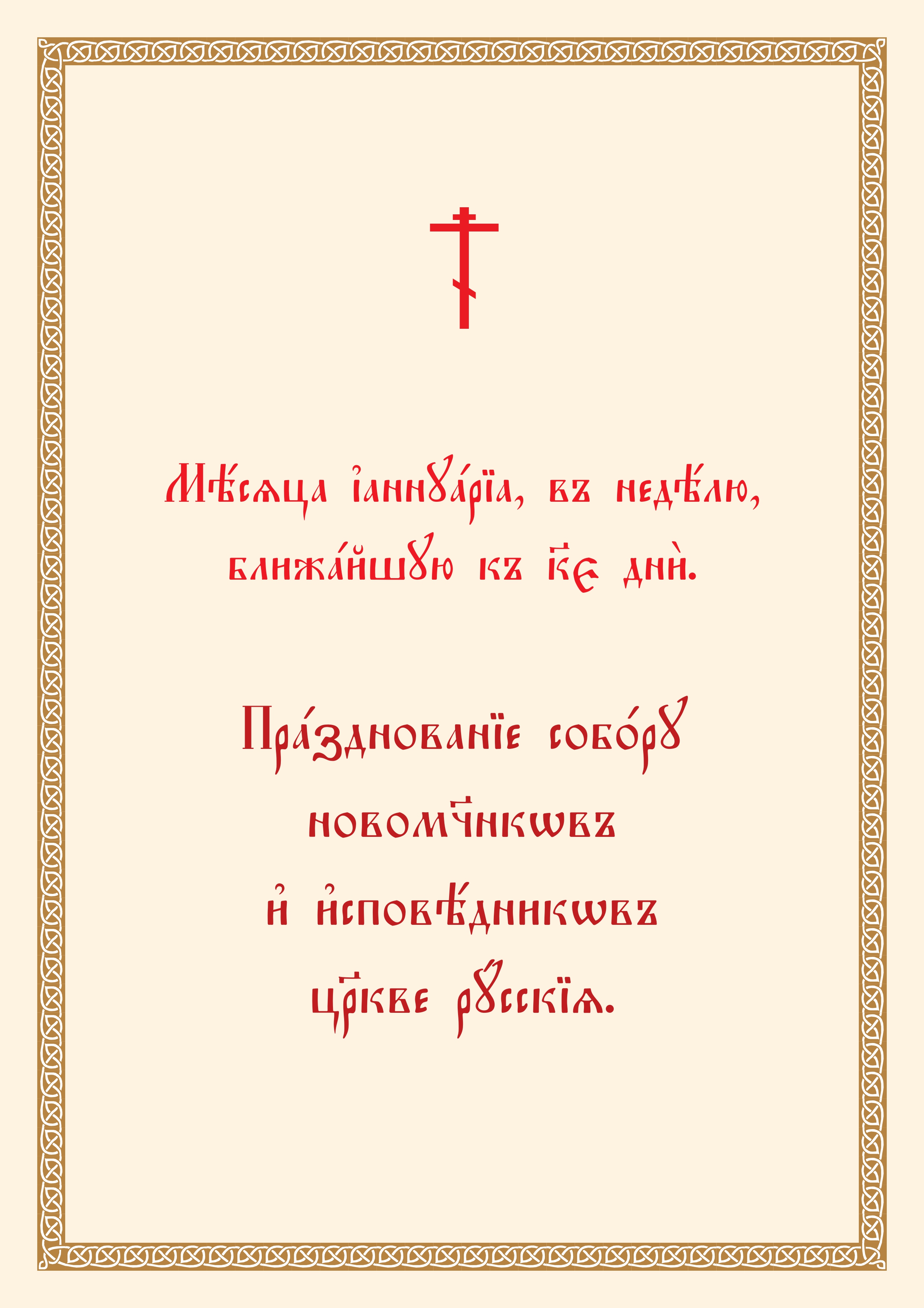 В Неделю (воскресенье), ближайшую к 25 января по ст. ст. Тропарь, кондак, величание Собору Новомучеников и Исповедников Церкви Русской
